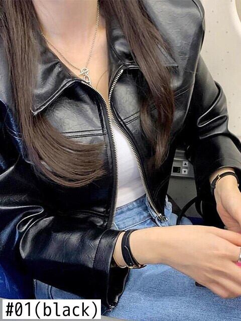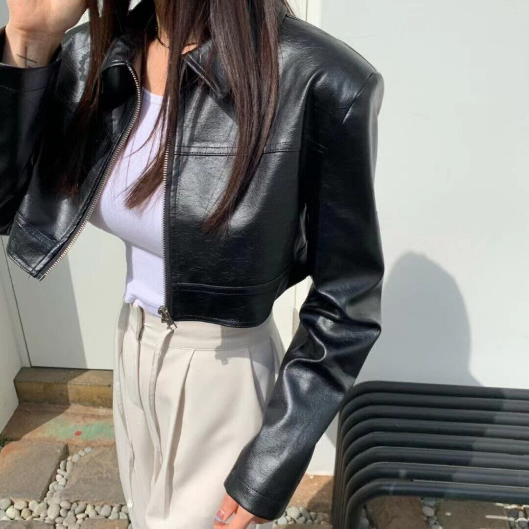 [EWQ] レトロラペルジッパー長袖スリムショート Pu レザージャケット秋ストリートソリッドカラースエードコート ロング スウェード オータム 秋物
