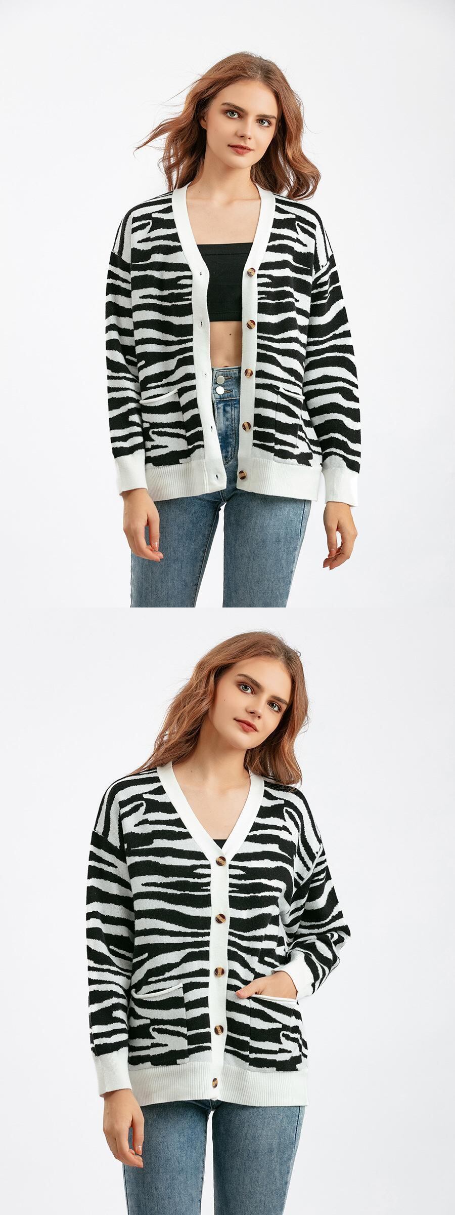 [EWQ] ストライプコントラストカーディガンコートシングルブレストルーズセータージャケット秋潮薄手服 6U2420 オータム 秋物