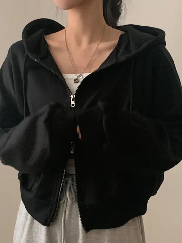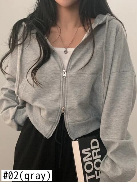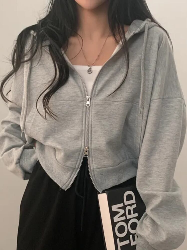 [EWQ] シック長袖フード付きダブルジッパーショートジャケット秋ルーズオーバーコート 6 色 ロング オータム 秋物