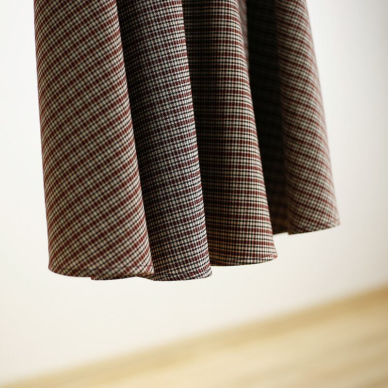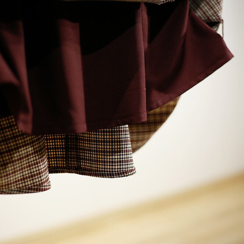 [EWQ] レトロチェック柄コントラストカラースプライス O ネックドレス長袖ベルトドレス秋 16O389 ロング オータム 秋物 ハーネス Oネック