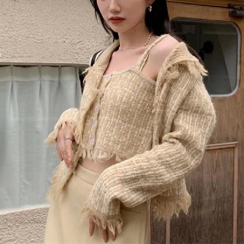 [EWQ] カーディガンコート長袖テルバーズオープンステッチセータージャケット秋潮服 U3398 ロング オータム 秋物