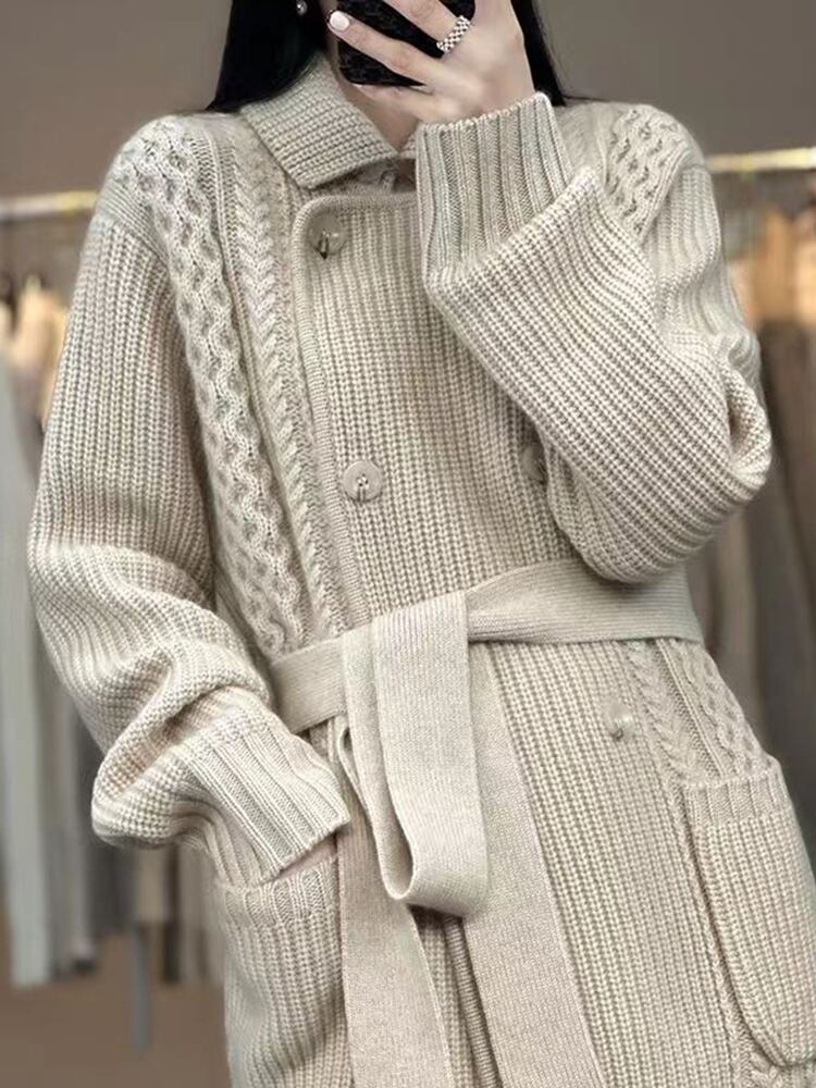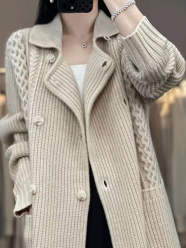 [EWQ] ダブルブレストカーディガンコート長袖ルーズベルト長さセータージャケット秋冬ニットコート 85 ロング オータム 秋物 ウィンター 冬物 ハーネス