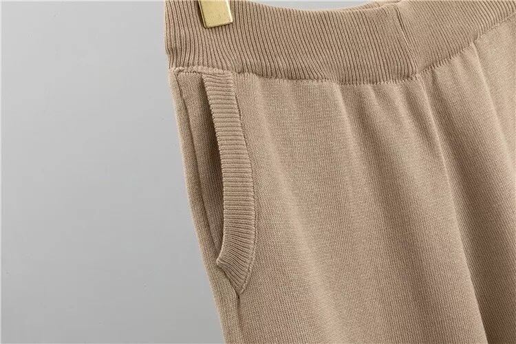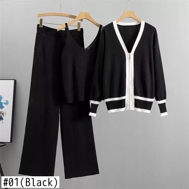 [EWQ] 3点ニットスーツラインジップアップカーディガンコートノースリーブニットベスト+伸縮性パンツ秋潮セット エラスティック オータム 秋物