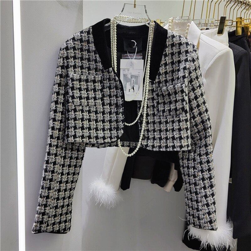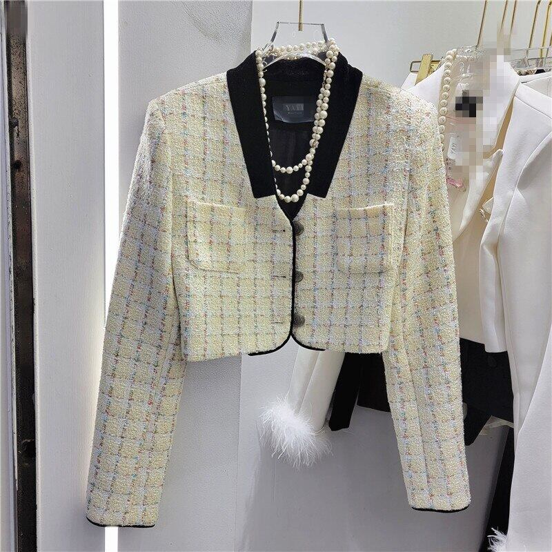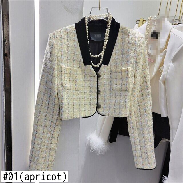 [EWQ] レディース チェック 厚手 ツイード ジャケット 長袖 ポケット ラペル コントラスト ショート コート 秋冬 潮 6U4052 ロング レッド オータム 秋物 ウィンター 冬物