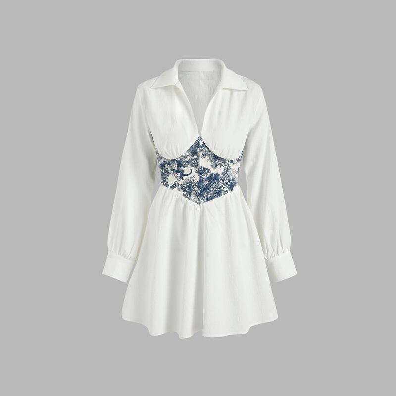 [EWQ]有能でトレンディレディースプリント長袖パッチワークシャツワンピース秋きれいめワンピース16O016 ロング オータム 秋物