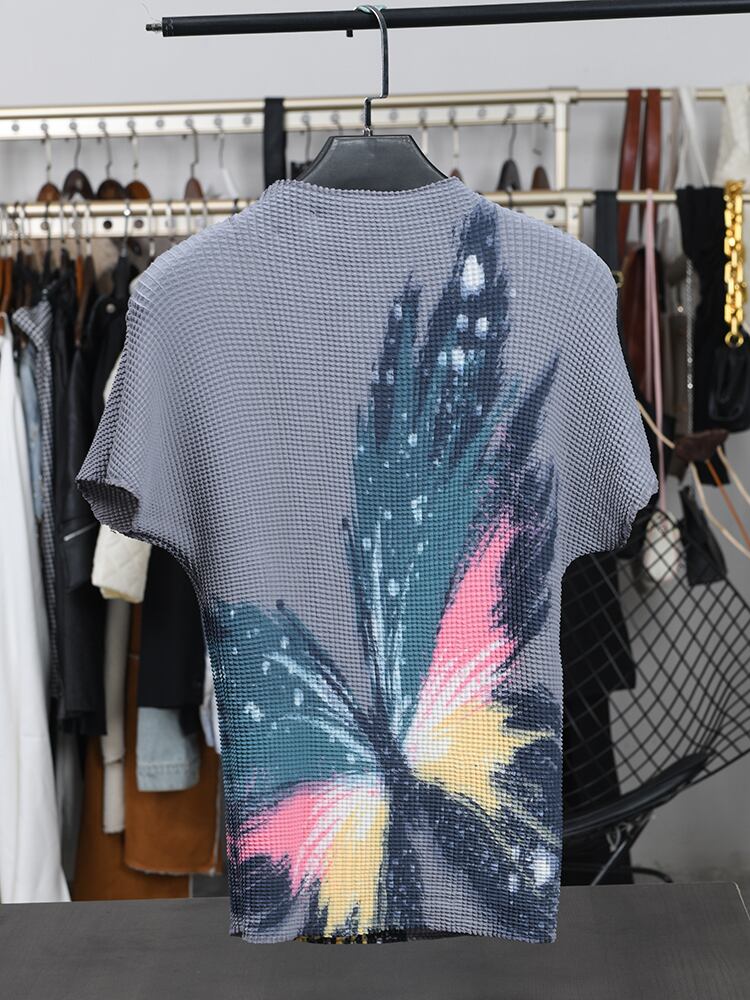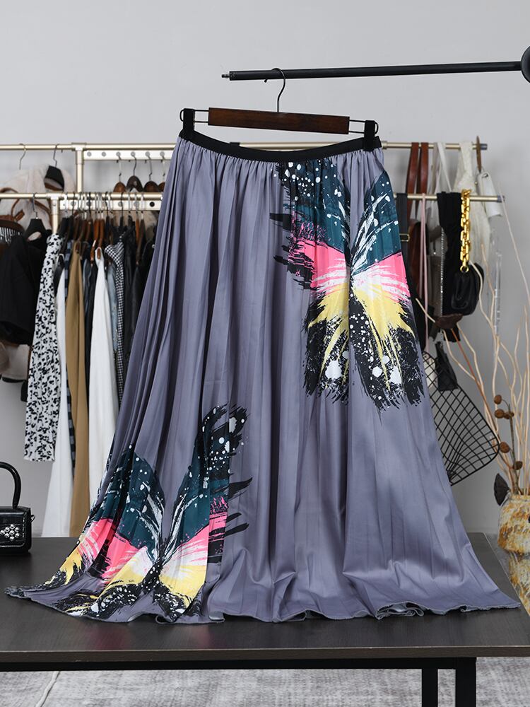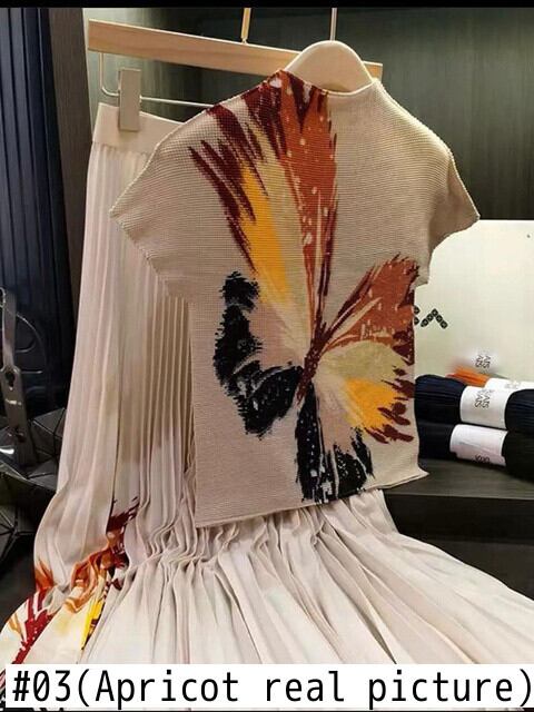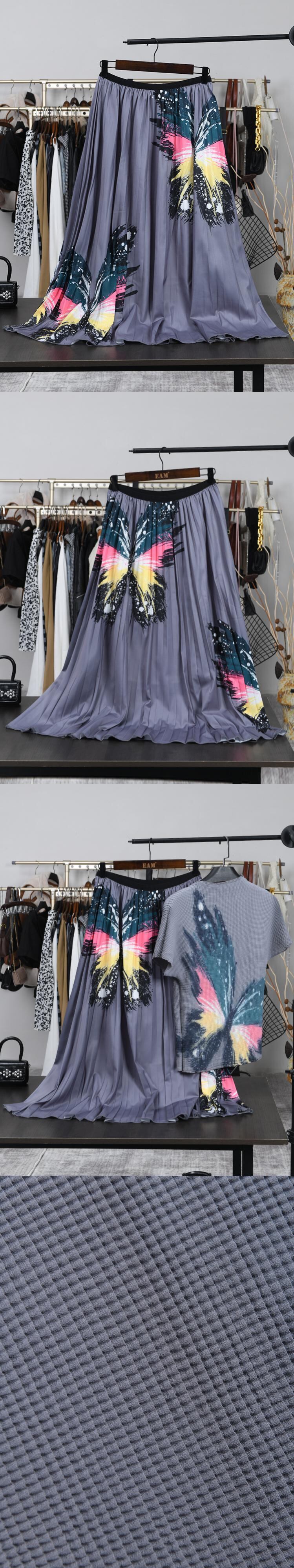 [EWQ] グラデーション半袖プリントシャツ+ウエストゴムプリーツスカート レディース 2点セット 春潮パーティー ショート ハーフスリーブ エラスティック 伸縮 スプリング 春物