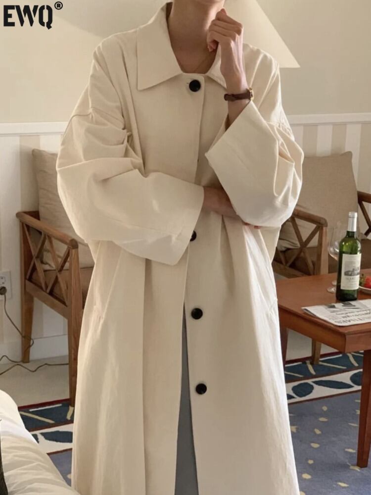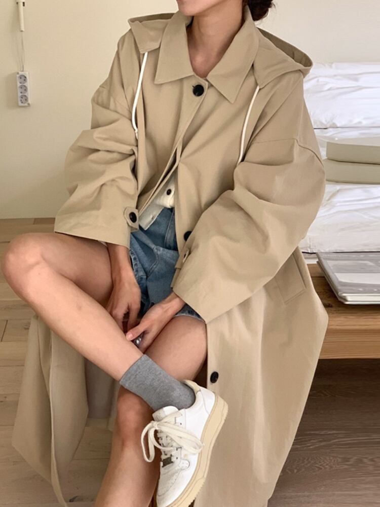 [EWQ] 取り外し可能フード付きウインドブレーカージャケットシングルブレストルーズ丈トレンチコート生き抜く秋冬 16U3739 オータム 秋物 ウィンター 冬物