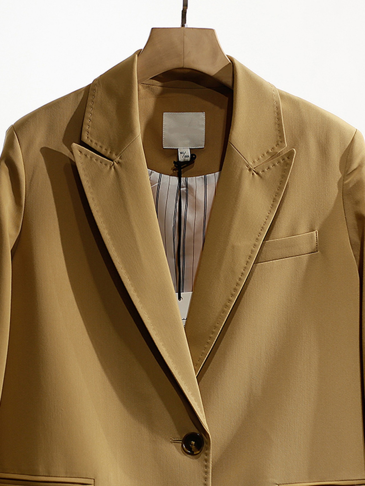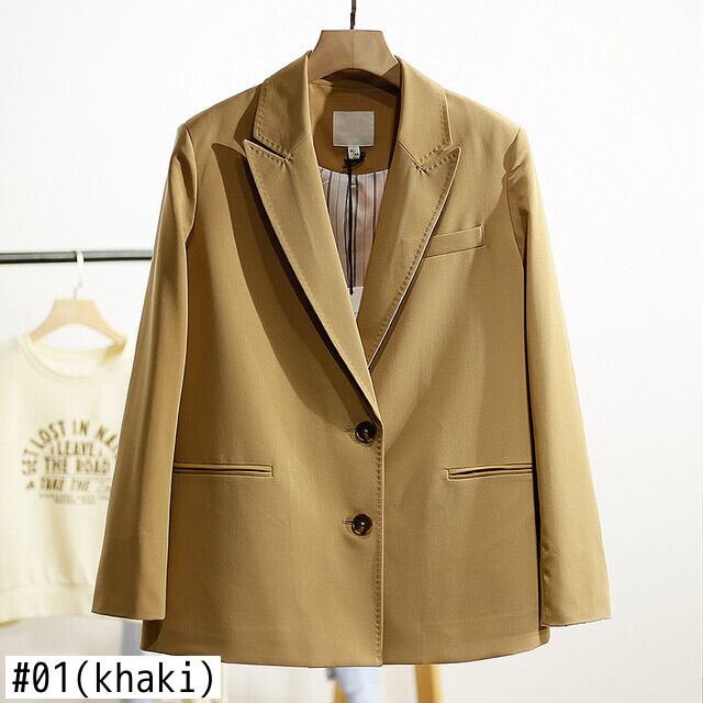 [EWQ] シンプル長袖シングルブレストブレザージャケットオフィスレディノッチカラースーツコート秋 16O392 ロング オータム 秋物 会社 学校 通勤や通学にも