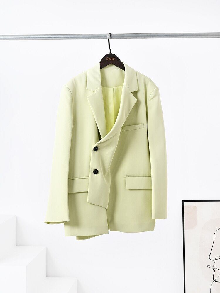 [EWQ] ブレザー ノッチカラー 変則 シングルブレスト 長袖 グリーン スーツ ジャケット 春秋 レディース ロング スプリング 春物 オータム 秋物