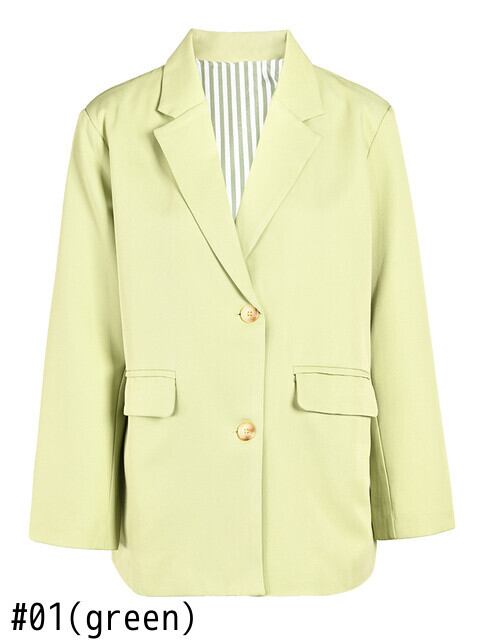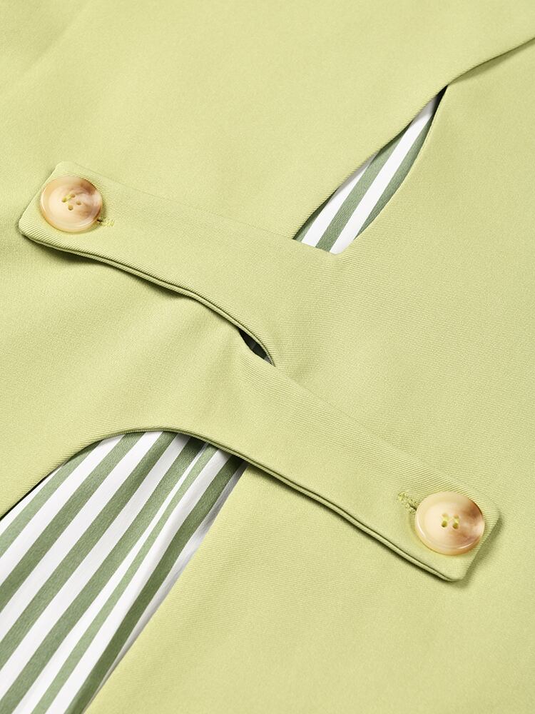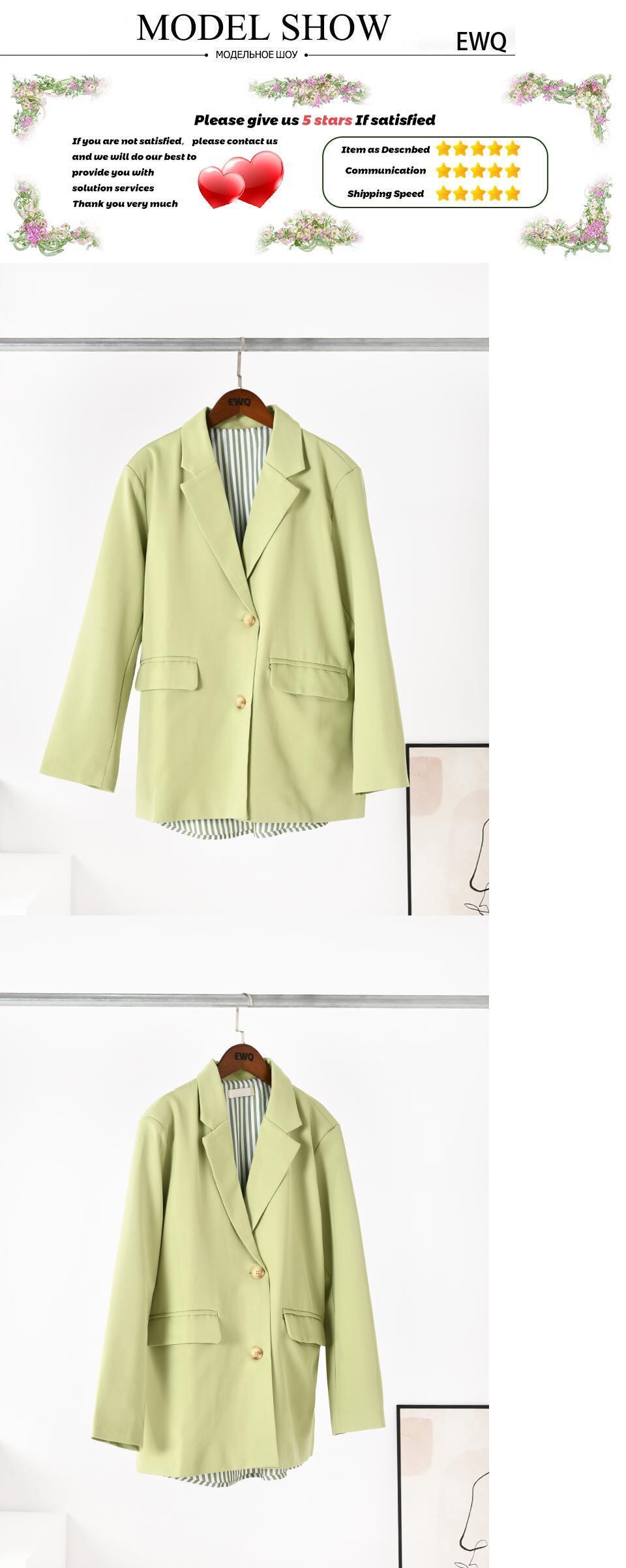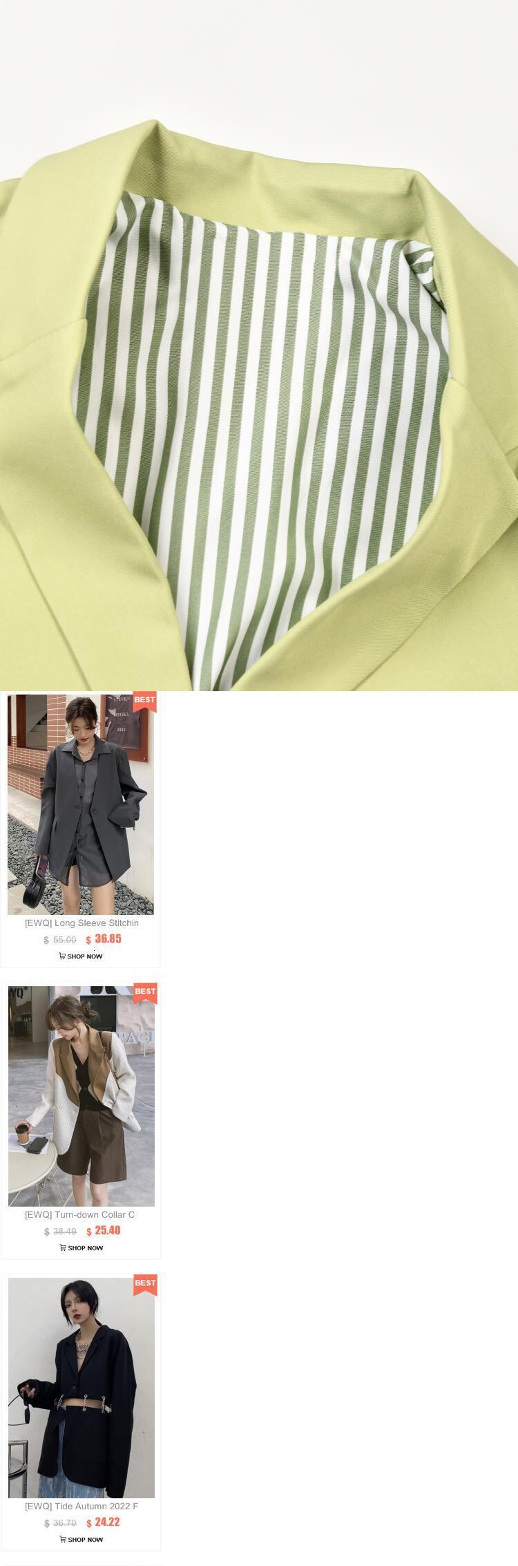 [EWQ] 長袖グリーンストライプジャケットバックスリットブレザージャケットオフィスレディスーツセット秋コート ロング オータム 秋物 会社 学校 通勤や通学にも