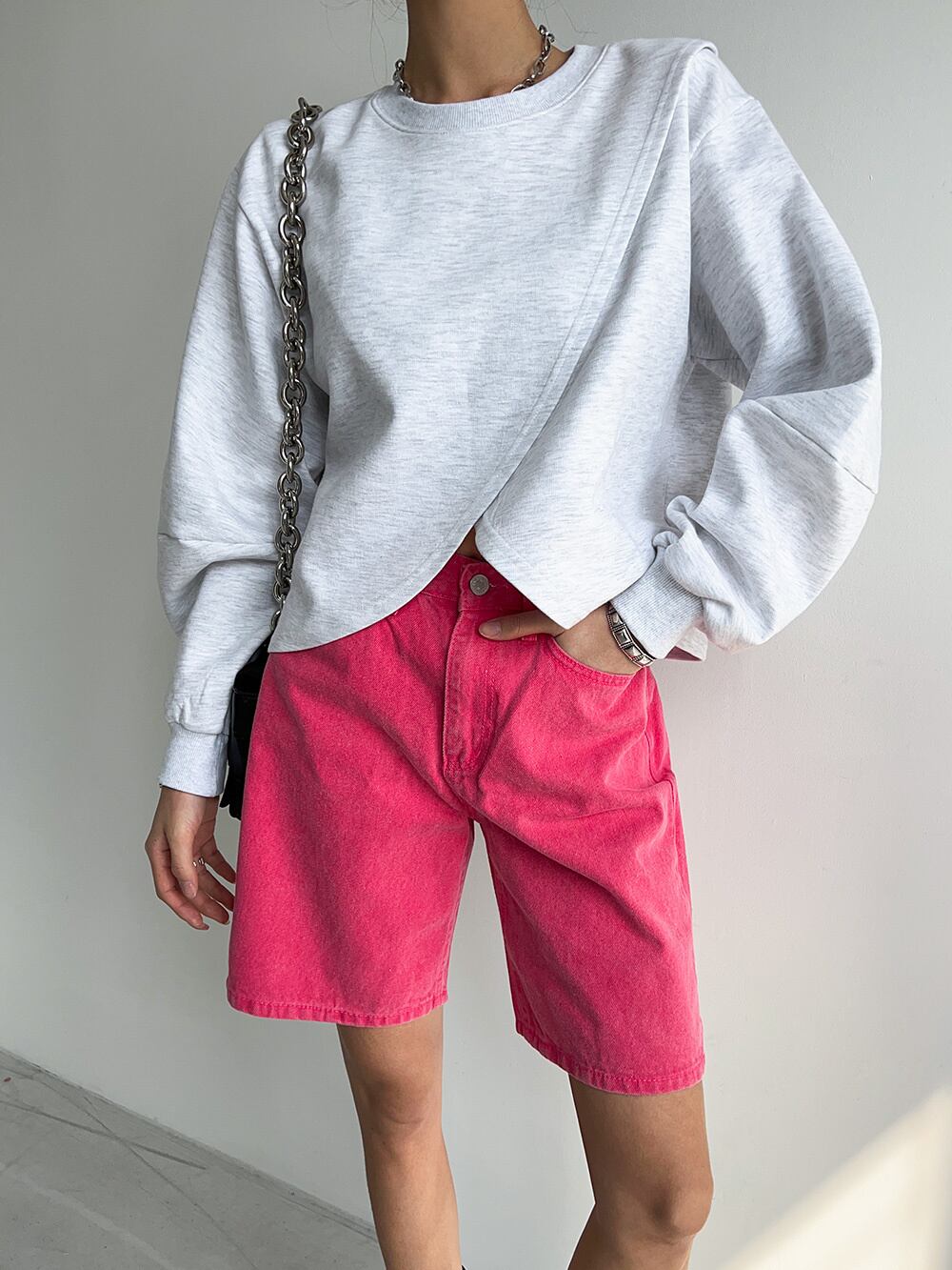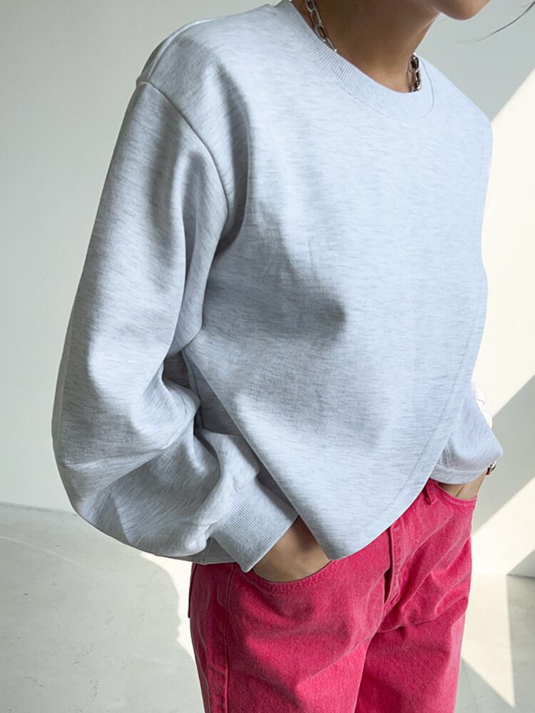 [EWQ] 秋 O ネック無地非対称プルオーバートップ不規則ルーズ長袖プルオーバー ロング オータム 秋物 Oネック ソリッドカラー