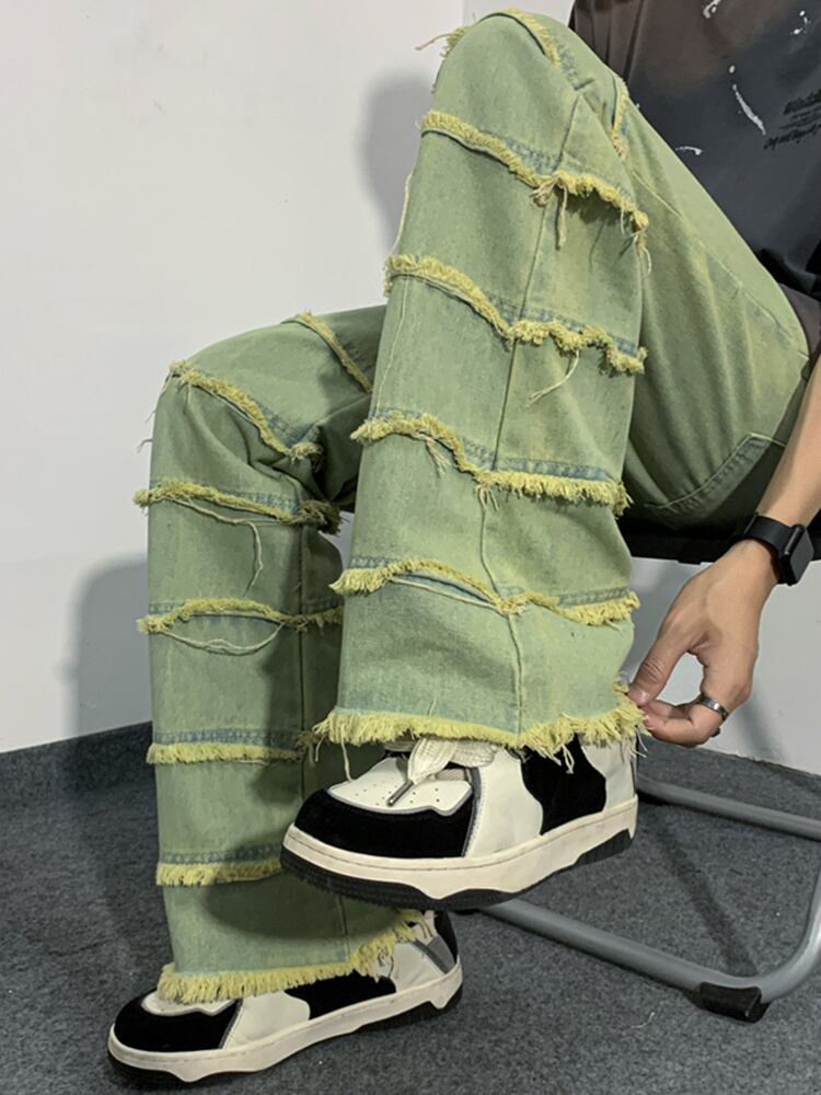 [EWQ] バーズ パッチワーク ジーンズ レディース ストリート ウエスト ワイドレッグ デニム パンツ ポケット サマー ズボン 夏物 ワイドパンツ