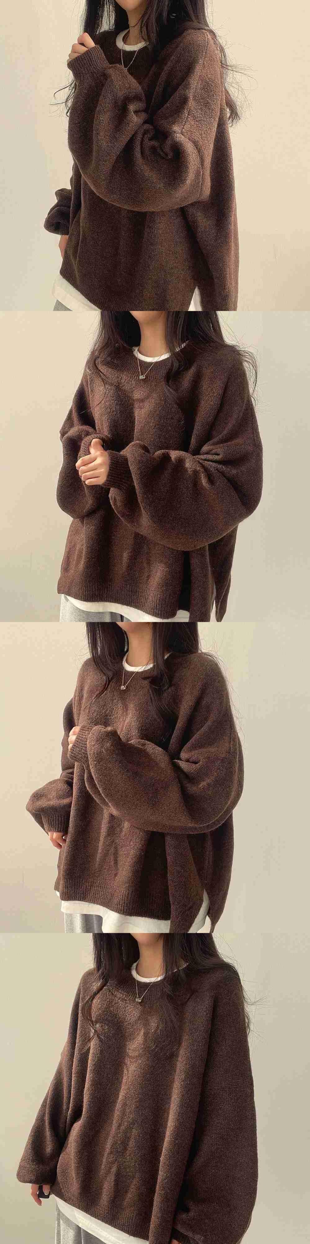 [EWQ] 秋 O ネックランタンスリーブ無地ルーズセータープルオーバーシンプル分割ニットプルオーバー オータム 秋物 Oネック ソリッドカラー