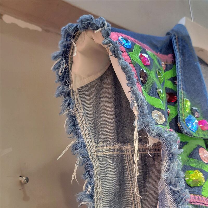 [EWQ] ダイヤモンドスプライスメッシュベストストリートノースリーブジャケット秋潮落書きチョッキトップ U2264 オータム 秋物
