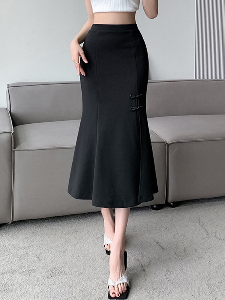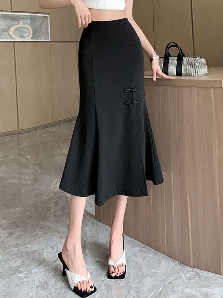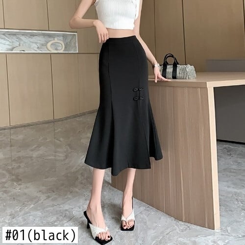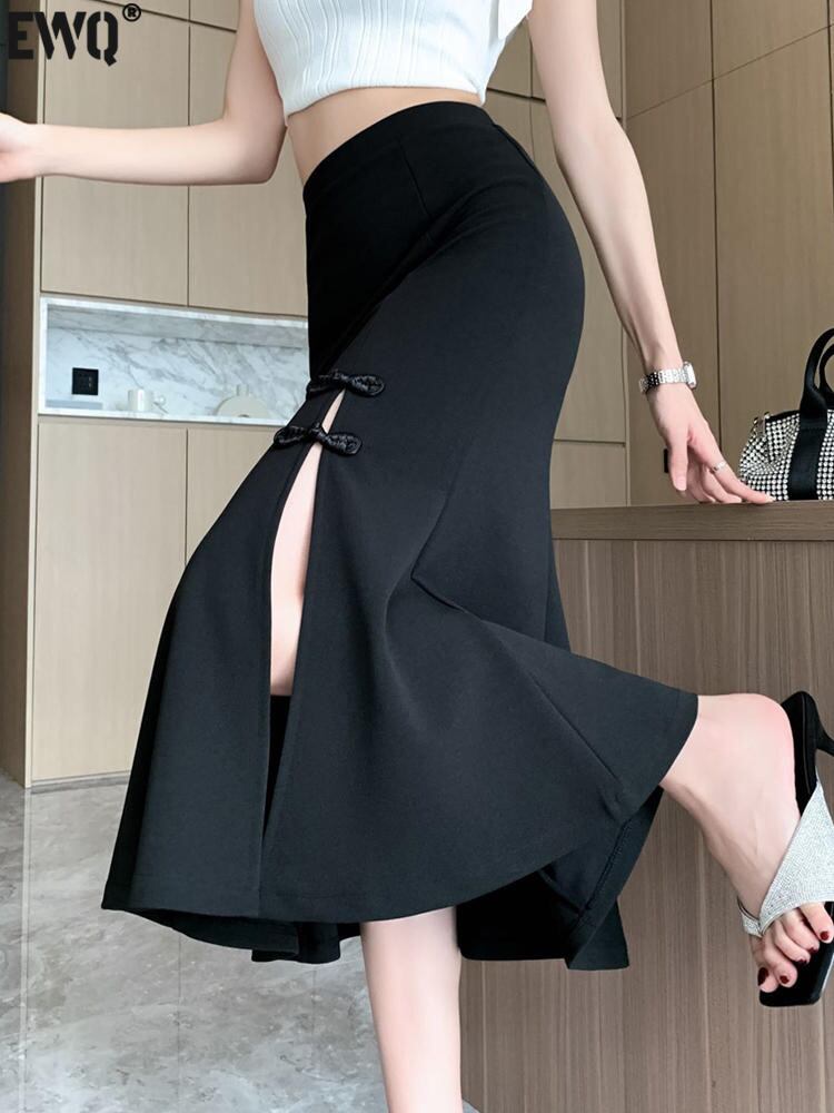 [EWQ] 蝶ネクタイスプリットブラックスーツスカート黒ウエストスカートオールマッチ服秋潮 Faldas リボン オータム 秋物