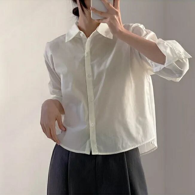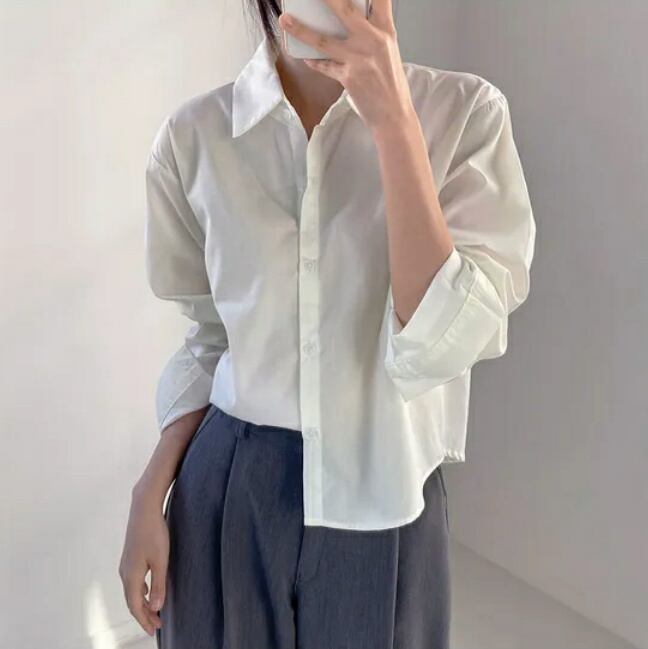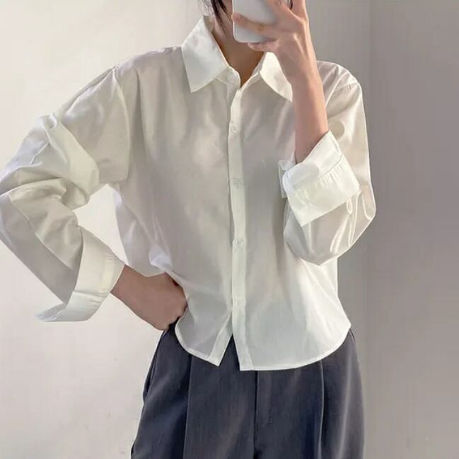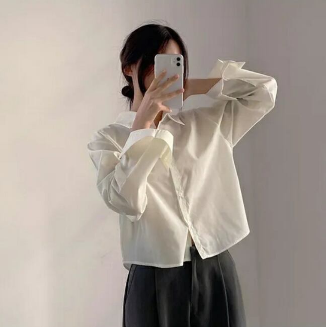[EWQ] ルーズ白シャツ長袖シングルブレスト薄手秋潮ブラウストップ 16U2331 ロング ホワイト オータム 秋物