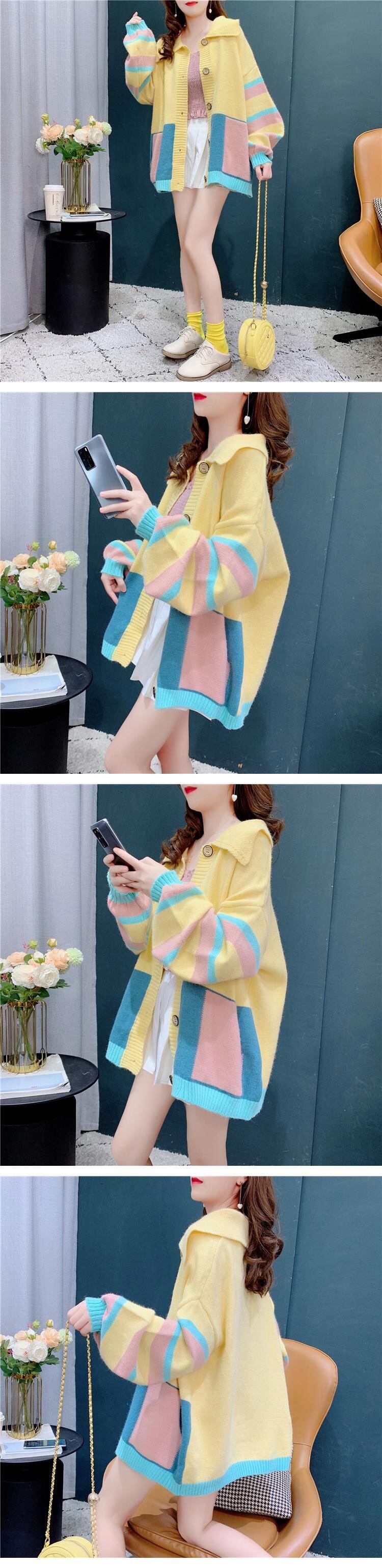 [EWQ] 春秋シック長袖セーターニットルーズカーディガンジャケットトップコートレディース美しい ロング スプリング 春物 オータム 秋物