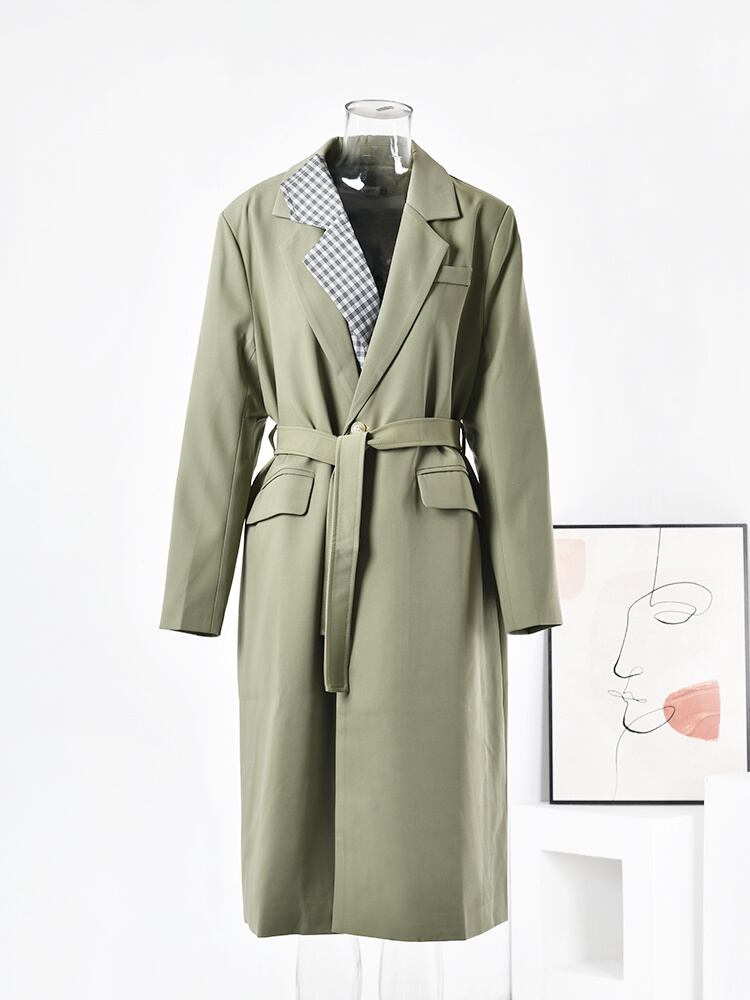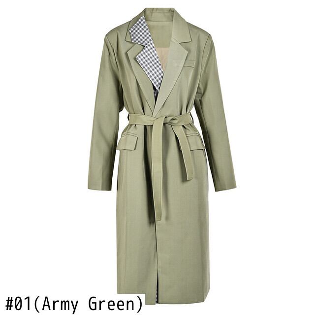 [EWQ] シックアーミーグリーン ウインドブレーカー タイド オーバーコート レディース コート トレンチ コート アウター 秋 フェイク ツーピース オフィス オータム 秋物 会社 学校 通勤や通学にも