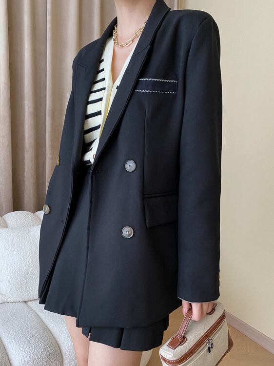 [EWQ] ブレザーコートパッチワーク長袖ルーズスーツジャケット秋潮ダブルブレストブレザー 2245 ロング オータム 秋物