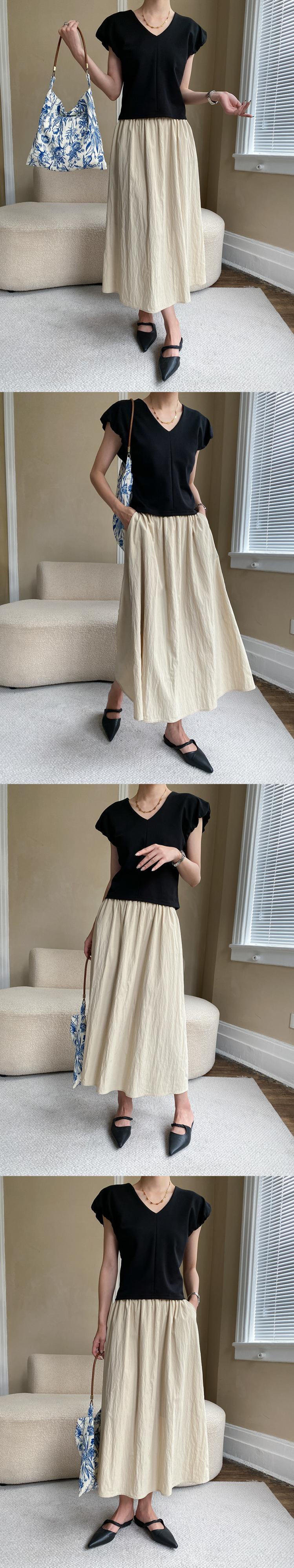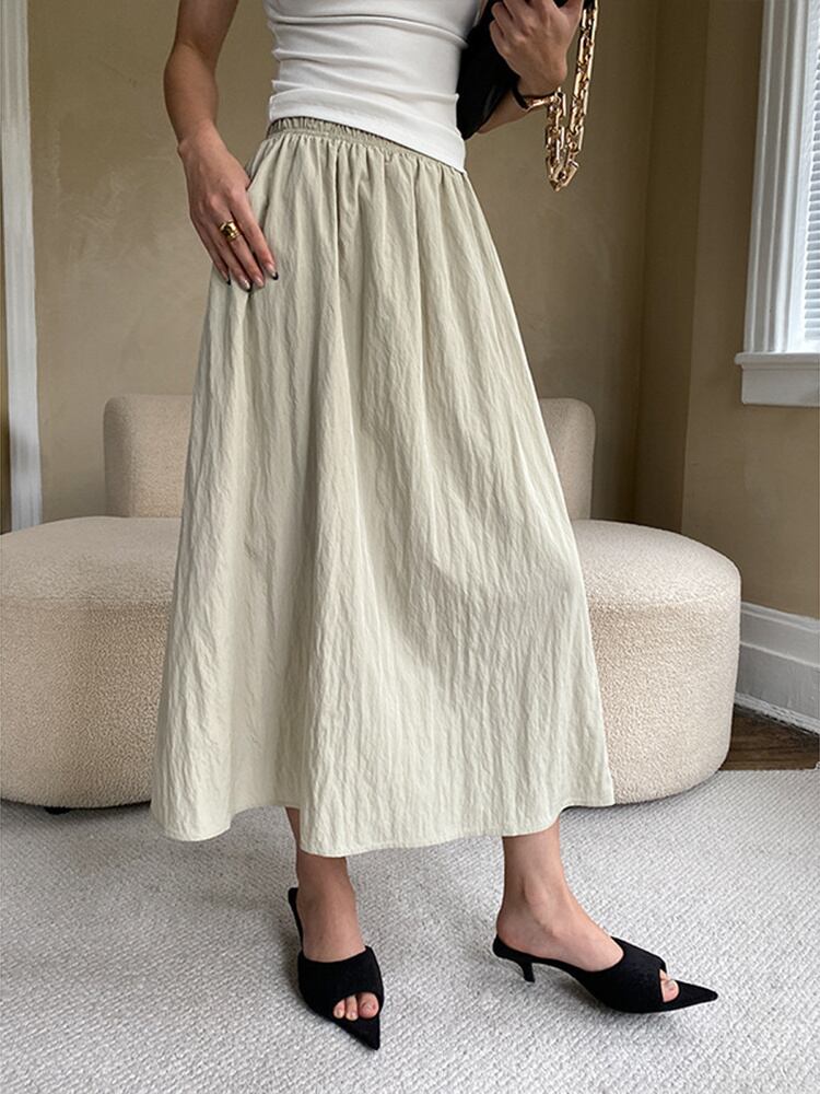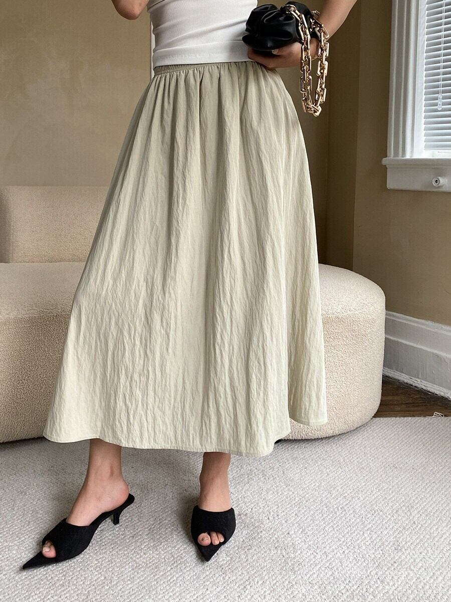[EWQ] プリーツゴムウエストスカート レディース シンプル 無地 オールマッチ 夏 トレンド 6O22 エラスティック 伸縮 サマー 夏物 ソリッドカラー