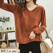 [EWQ] マルチカラー長袖セーター V ネックルーズプルオーバーニットトップ秋薄手服 ロング オータム 秋物 Vネック