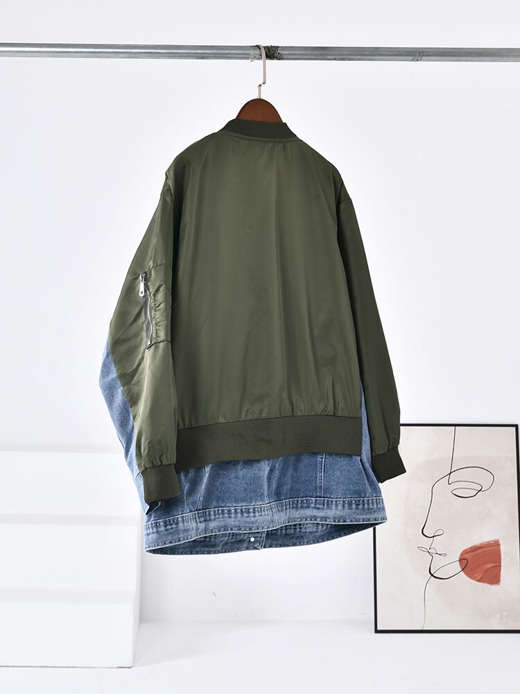 [EWQ] デニムパッチワークグリーンジャケット長袖ルーズジップアップジャケットコート秋潮生き抜く 16U2556 ロング オータム 秋物