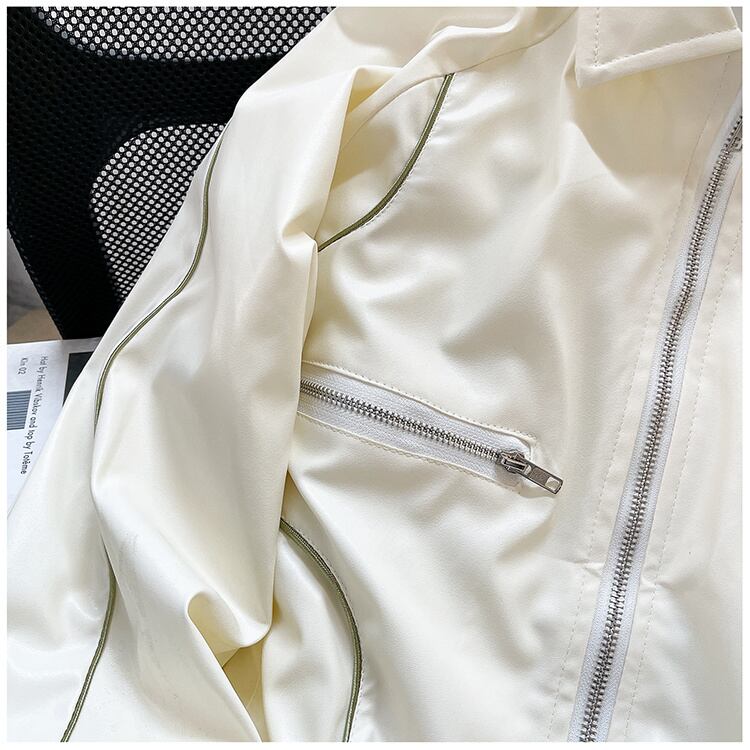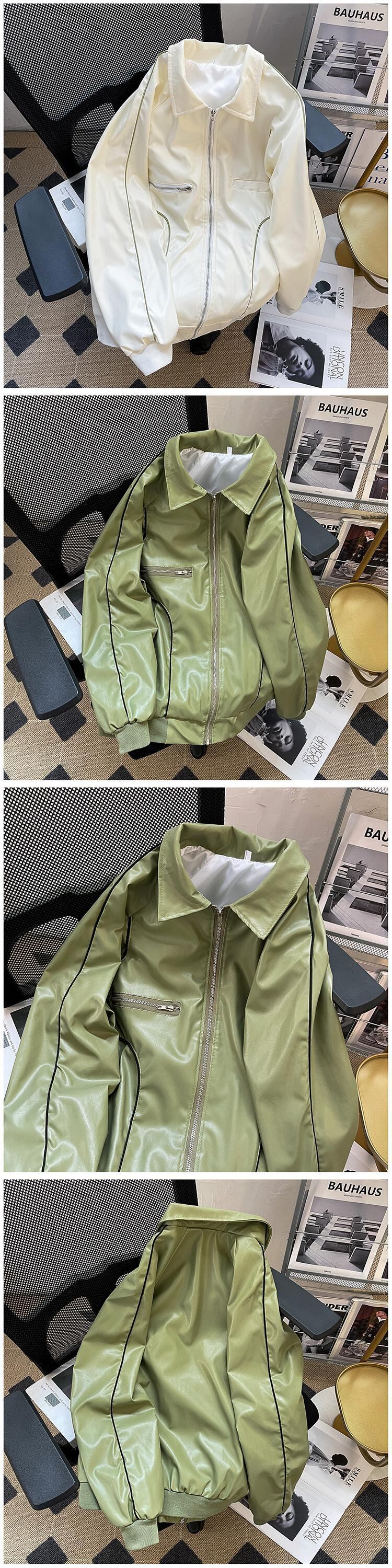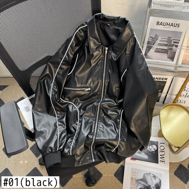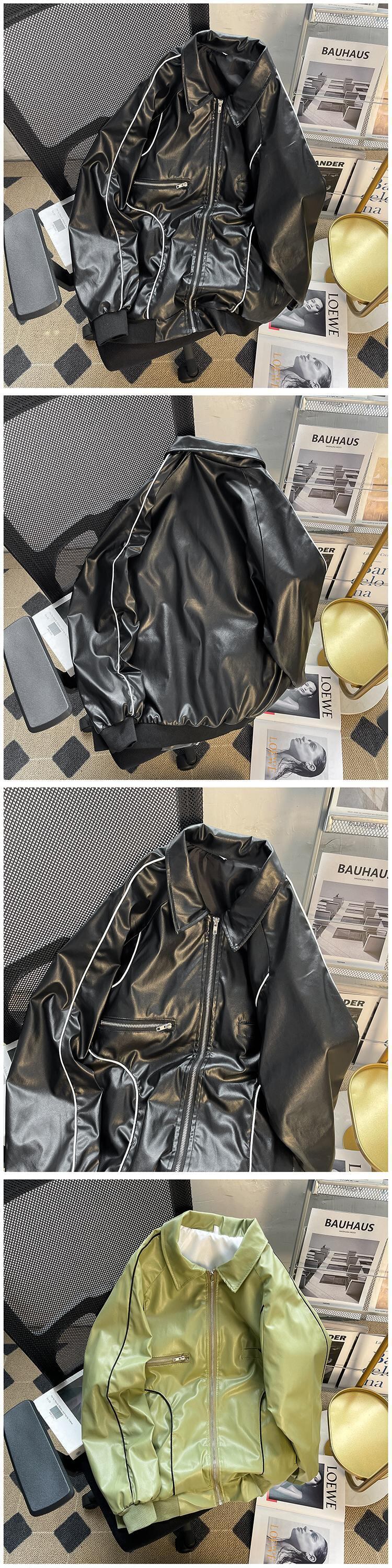 [EWQ] ストリート PU レザー ジャケット 秋タイドライン コントラスト ジップアップ ジャケット コート ルーズ アウター 16U2373 オータム 秋物