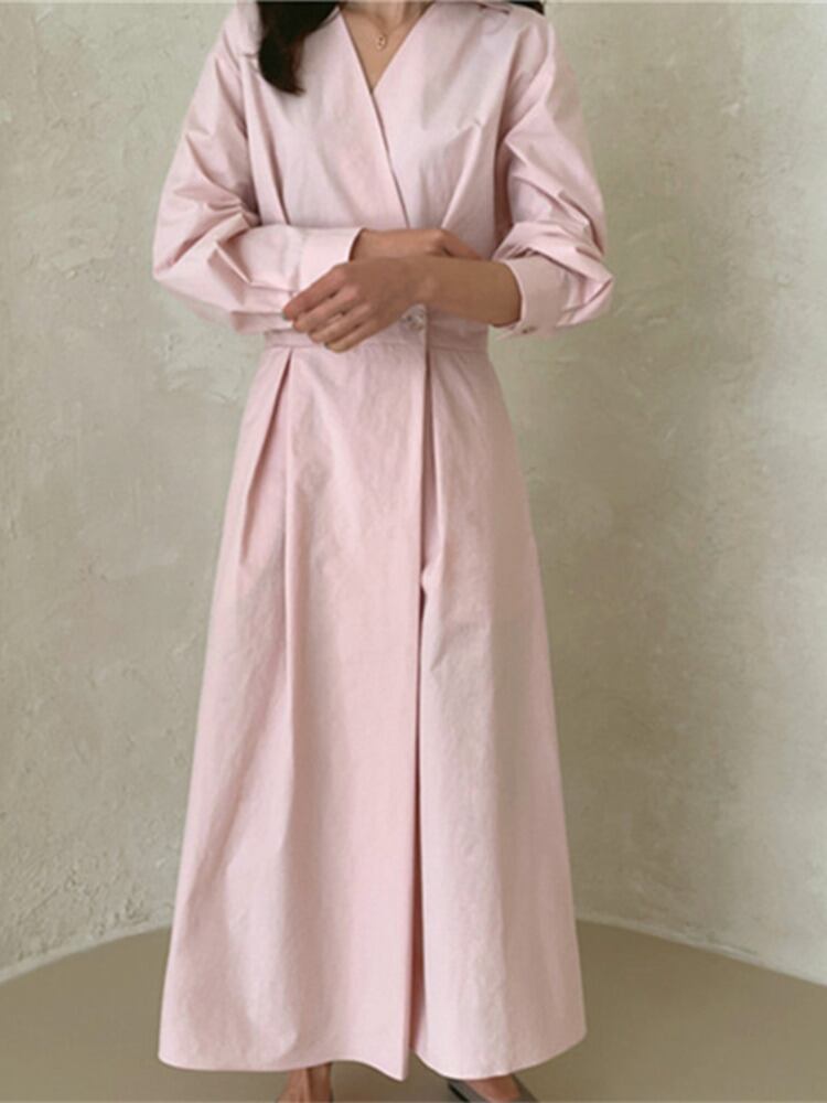 [EWQ] シックルーズソリッドシンプルターンダウンカラーシャツドレス春秋美しいドレス スプリング 春物 オータム 秋物 ソリッドカラー