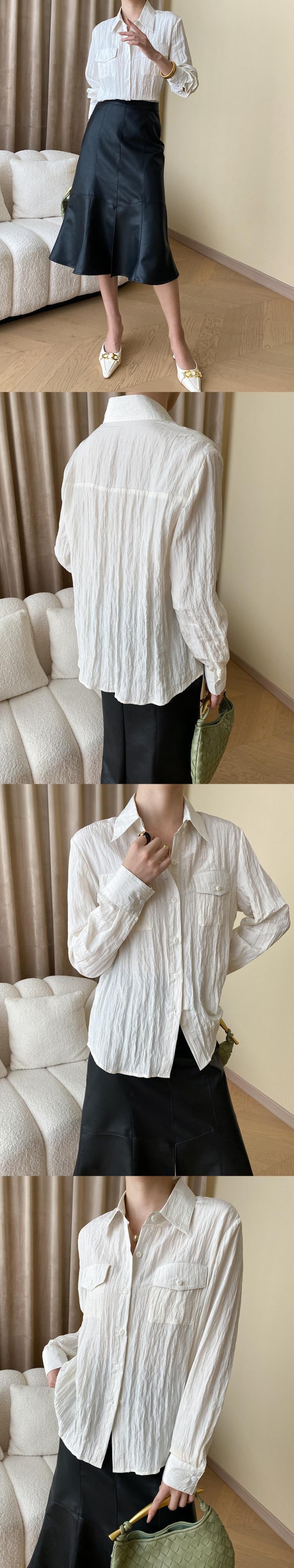 [EWQ] シングルブレストプリーツシャツゆったり長袖秋潮服 459 ロング オータム 秋物