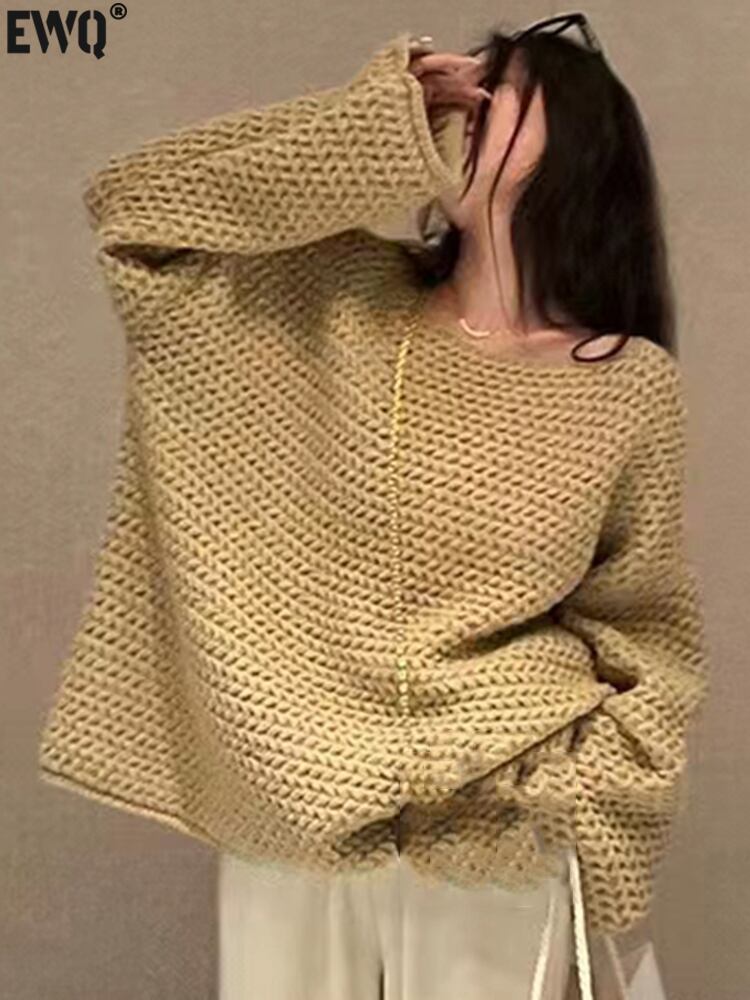[EWQ] セーター長袖ルーズ O ネックプルオーバーニットウェアトップ秋潮ニットトップス ロング オータム 秋物 Oネック