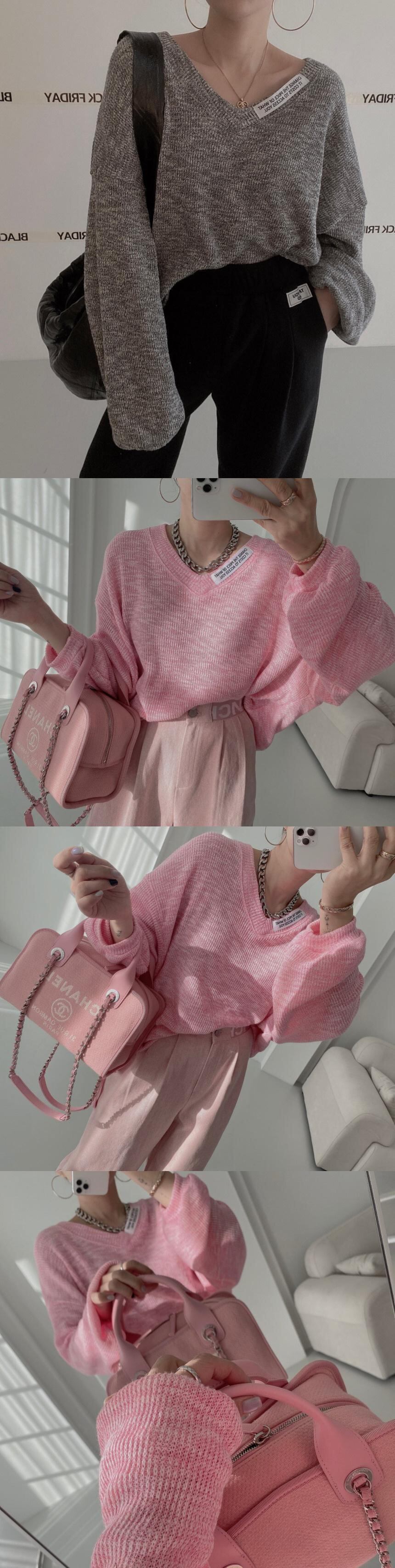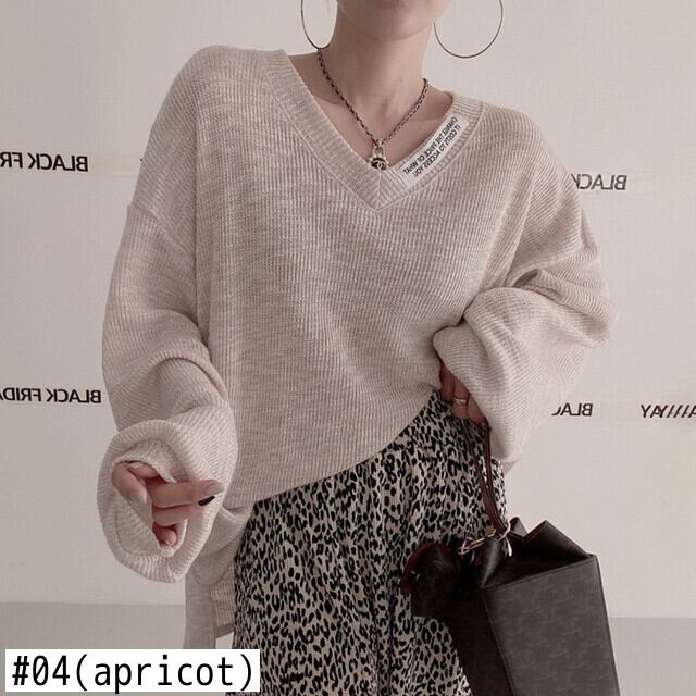 [EWQ] ルーズ V ネックレターパッチワークセーター長袖ビッグサイズニットプルオーバー秋冬潮トップス ロング オータム 秋物 ウィンター 冬物 Vネック