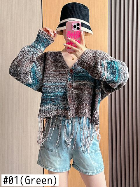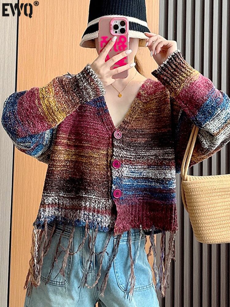 [EWQ] コントラストカーディガンコートシングルブレストテル長袖セータージャケット潮秋ニットコート 206 ロング オータム 秋物