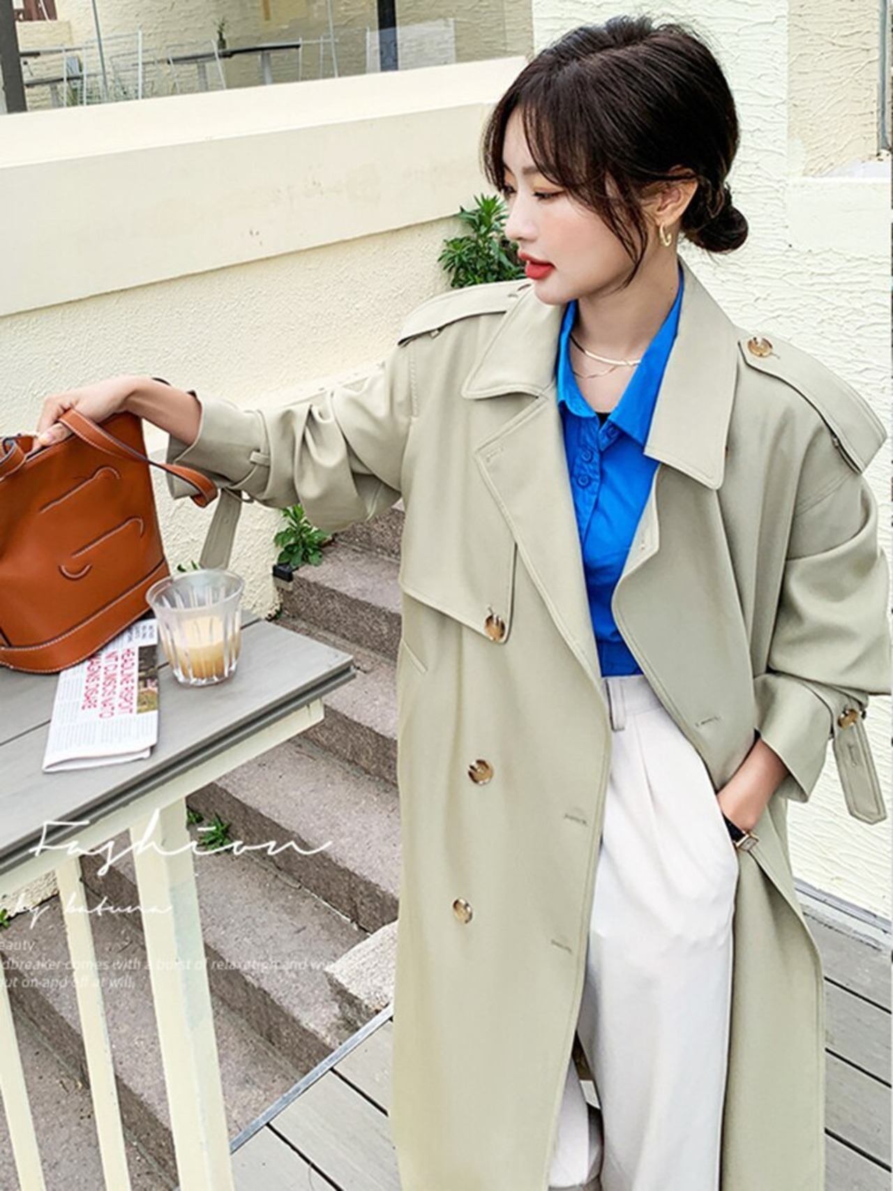 [EWQ] ブレットウインドブレーカーコート長袖包帯バックル気質トレンチジャケット秋生き抜く 16U981 ロング オータム 秋物