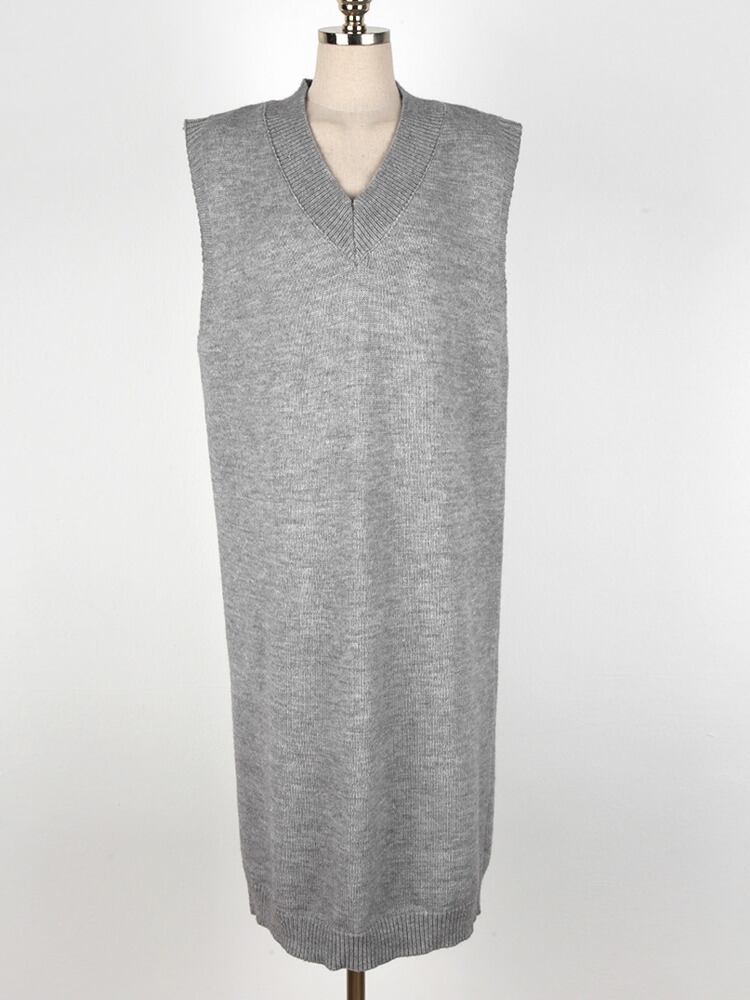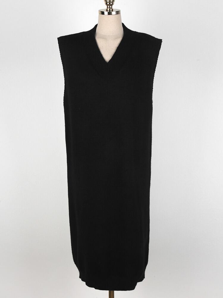 [EWQ] ソリッドカラーニットドレスルーズ半袖 V ネックセータードレス秋潮 Vestido U2507 ショート ハーフスリーブ オータム 秋物 Vネック