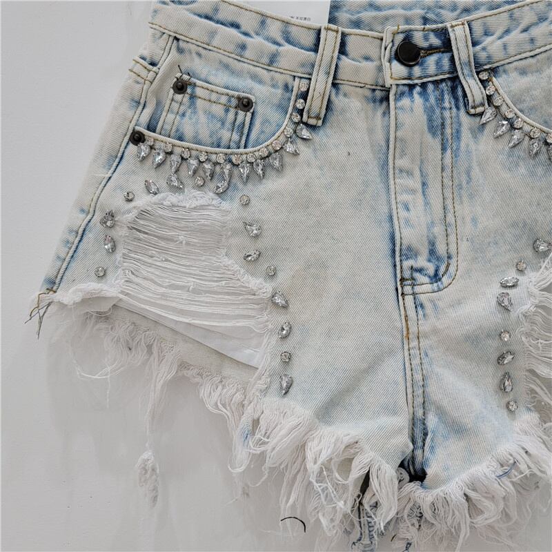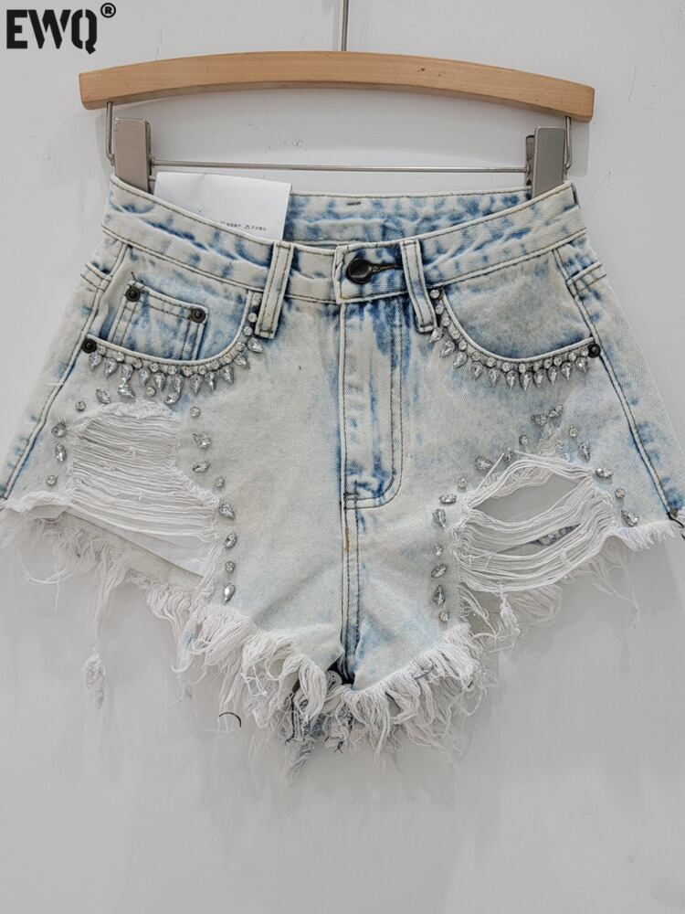 [EWQ] ダイヤモンド デニム ショートパンツ ウエスト ポケット パッチワーク テル バリ イレギュラー ショート ジーンズ 夏潮服 サマー 夏物 ショーツ ブルマー