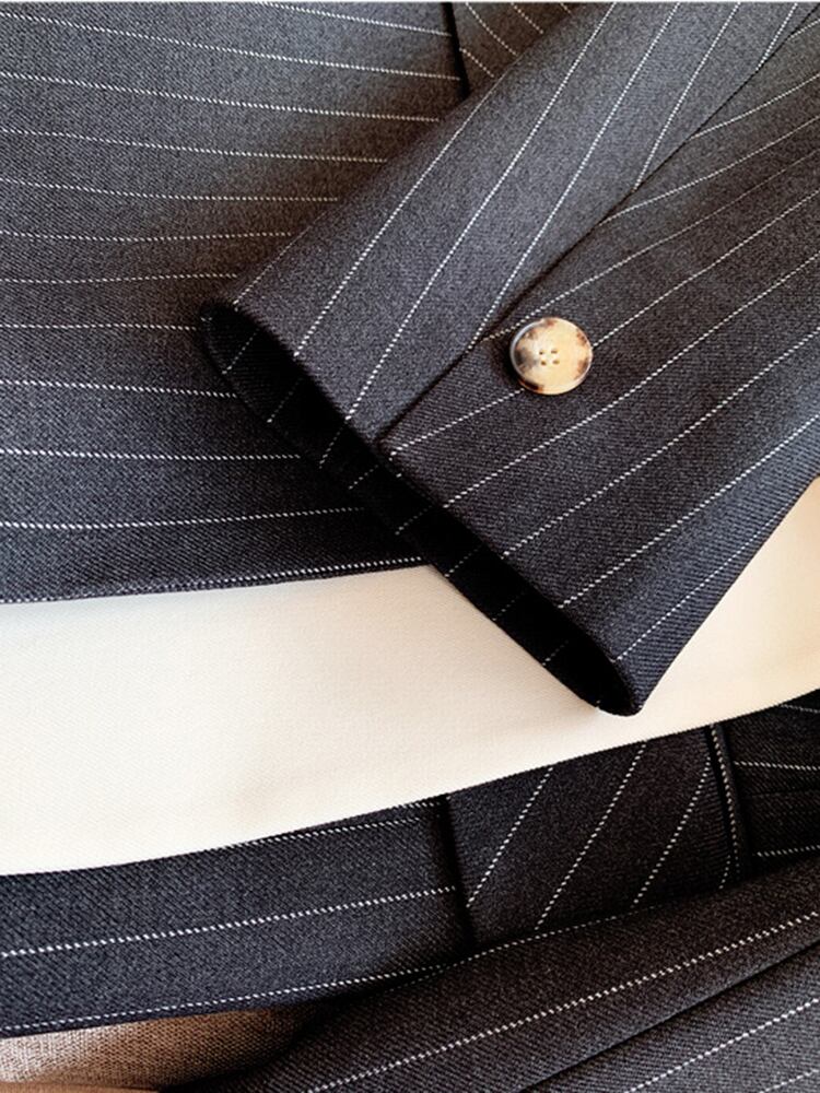 [EWQ] ストライプブレザーコートパッチワークコントラストカラー長袖スーツジャケット秋潮ブレザー ロング オータム 秋物