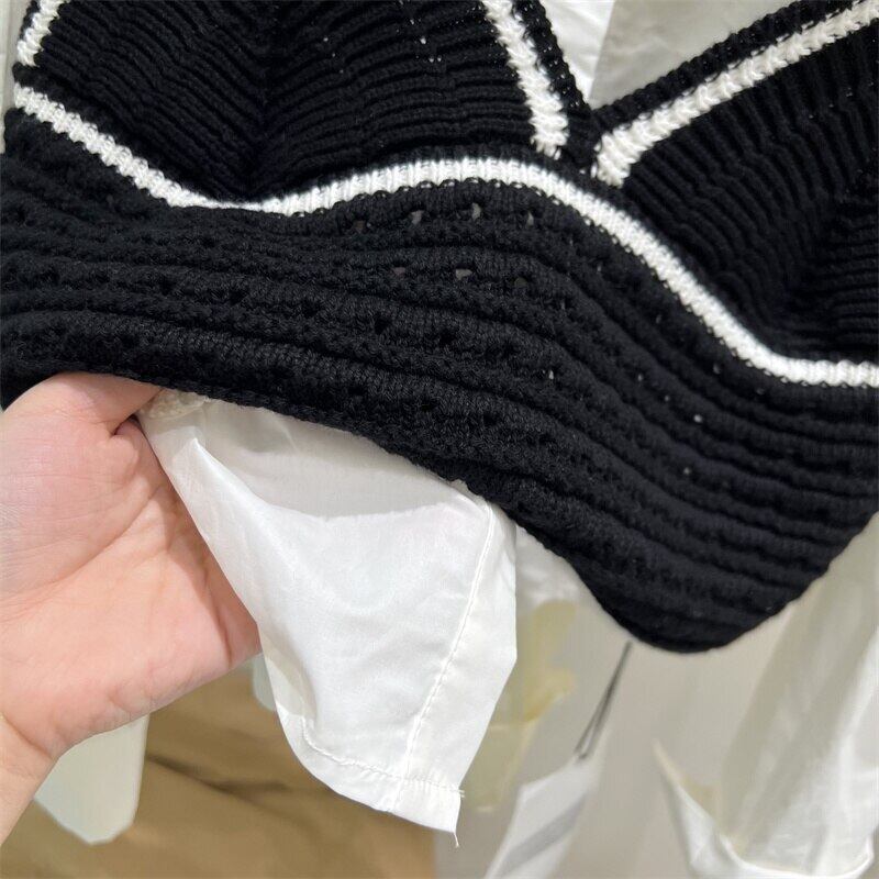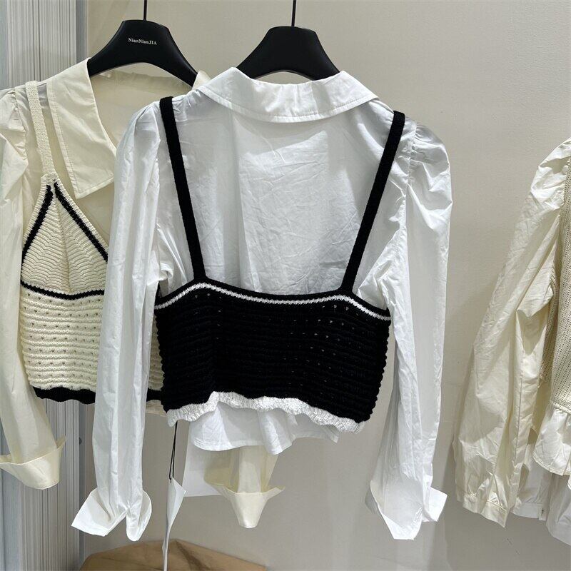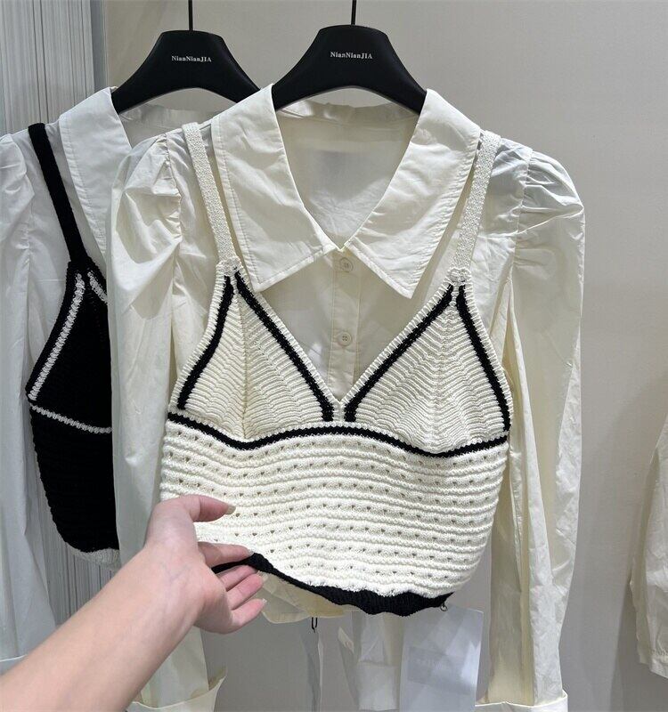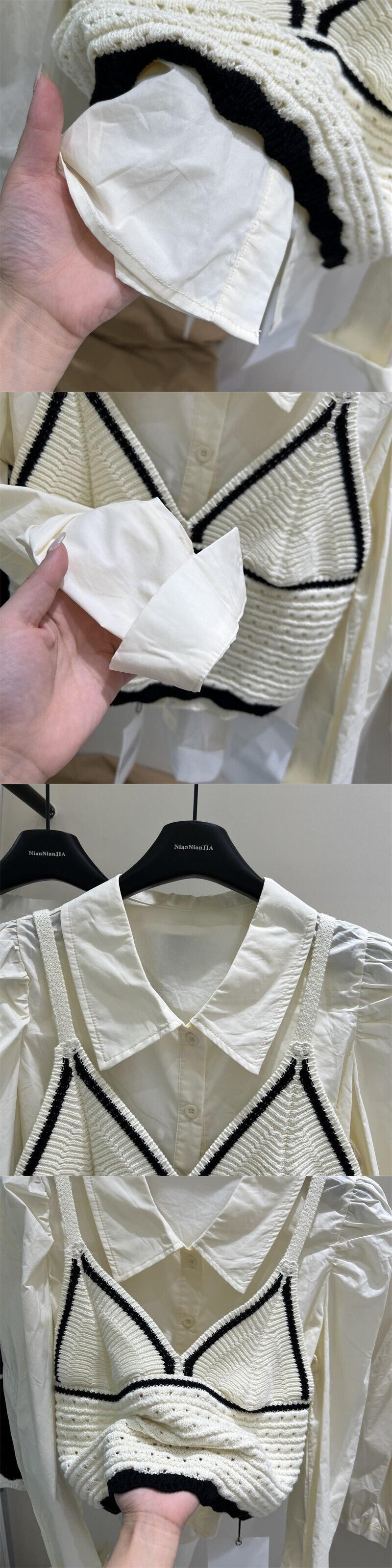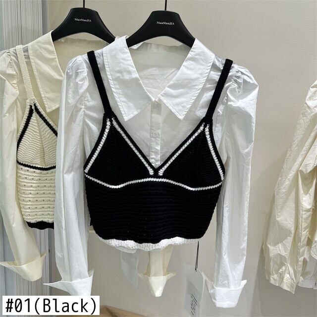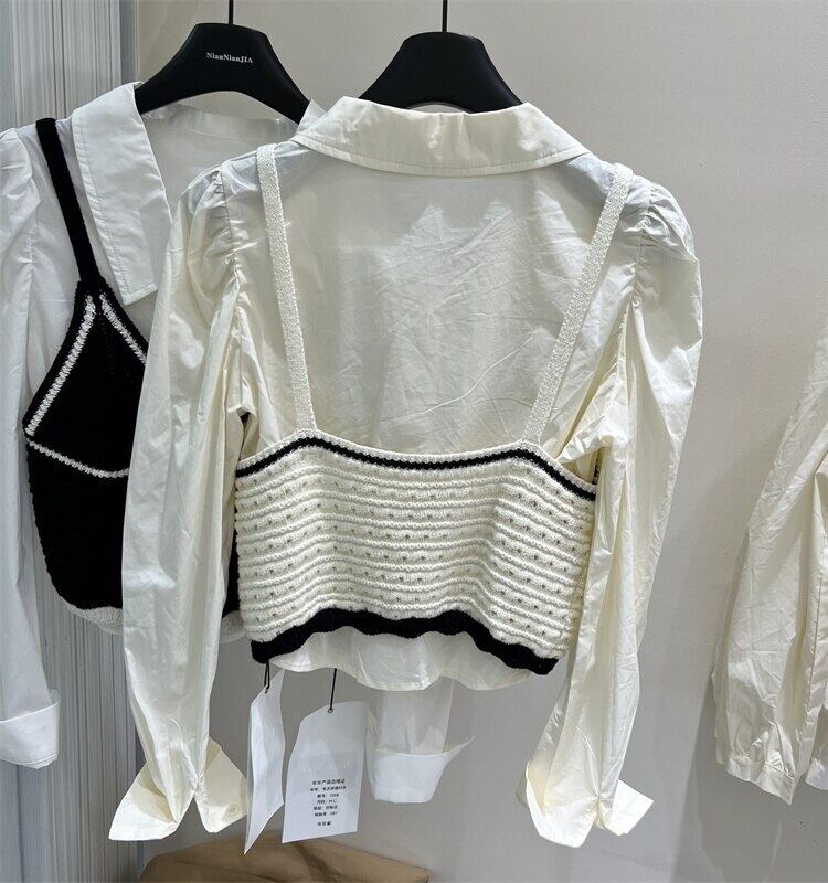 [EWQ] バブルスリーブシンプルシャツ + ニットセータープルオーバーベスト秋冬潮 16U4047 オータム 秋物 ウィンター 冬物