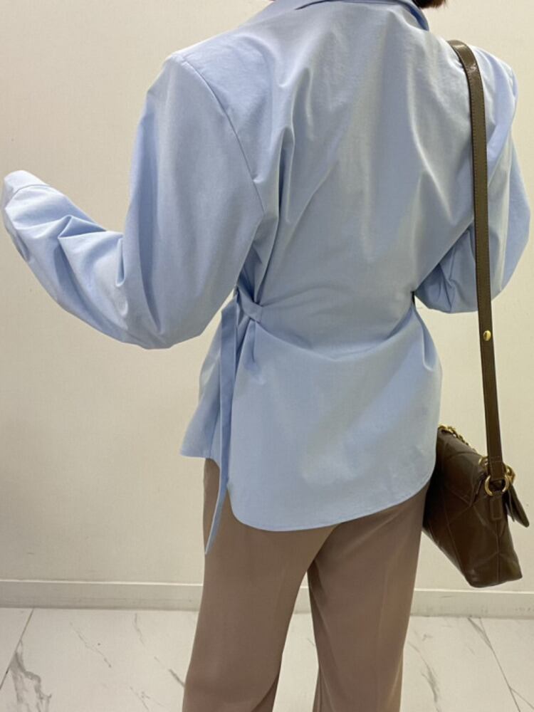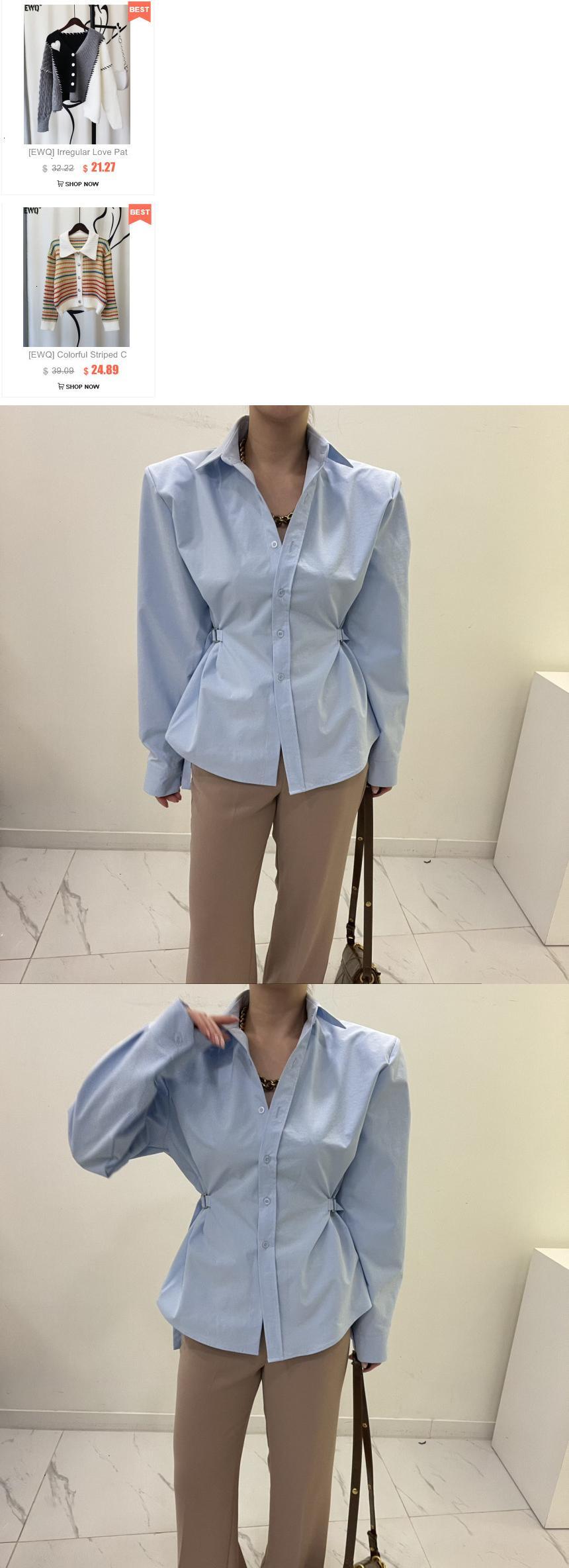[EWQ] レディース サイドレースアップシャツ 長袖 シングルブレスト OL 秋冬 タイドトップ 589 ロング オータム 秋物 ウィンター 冬物 会社 学校 通勤や通学にも