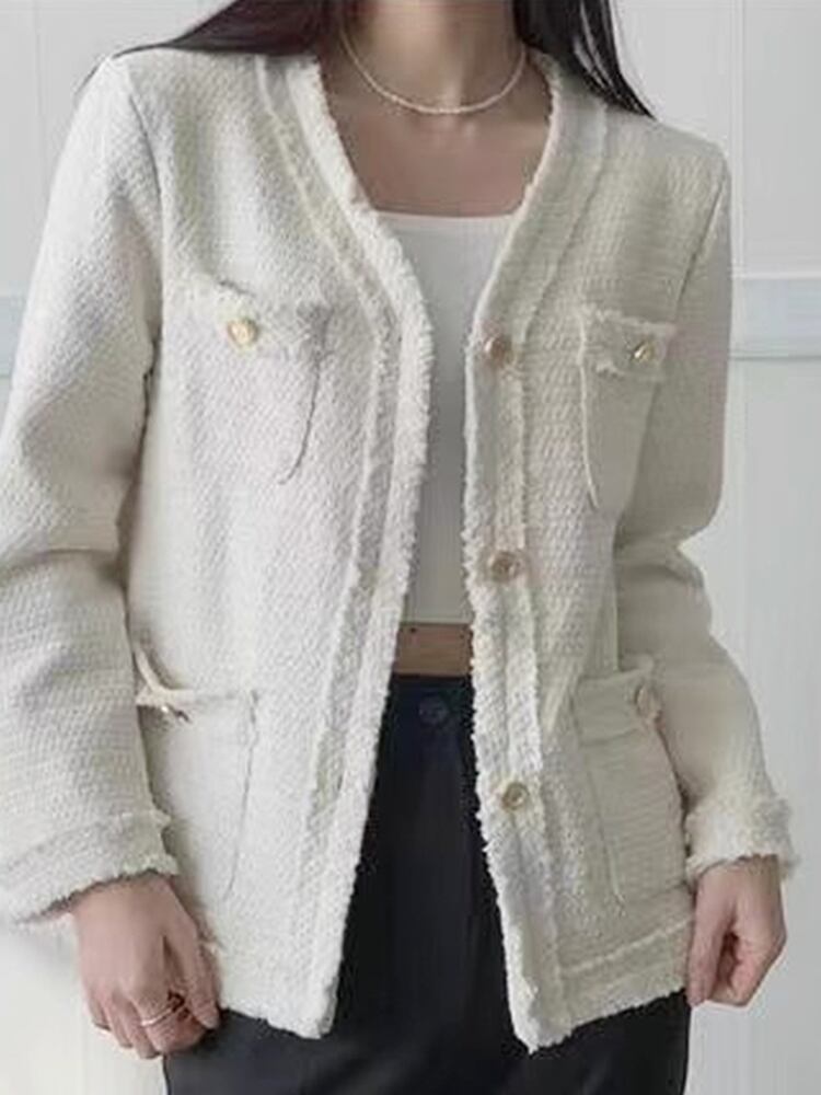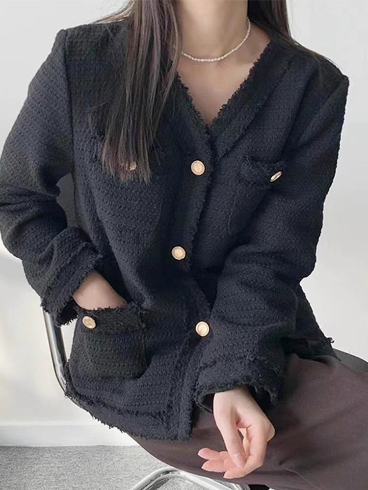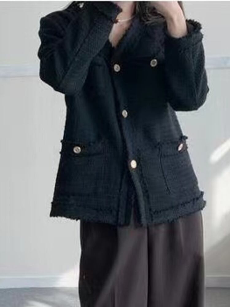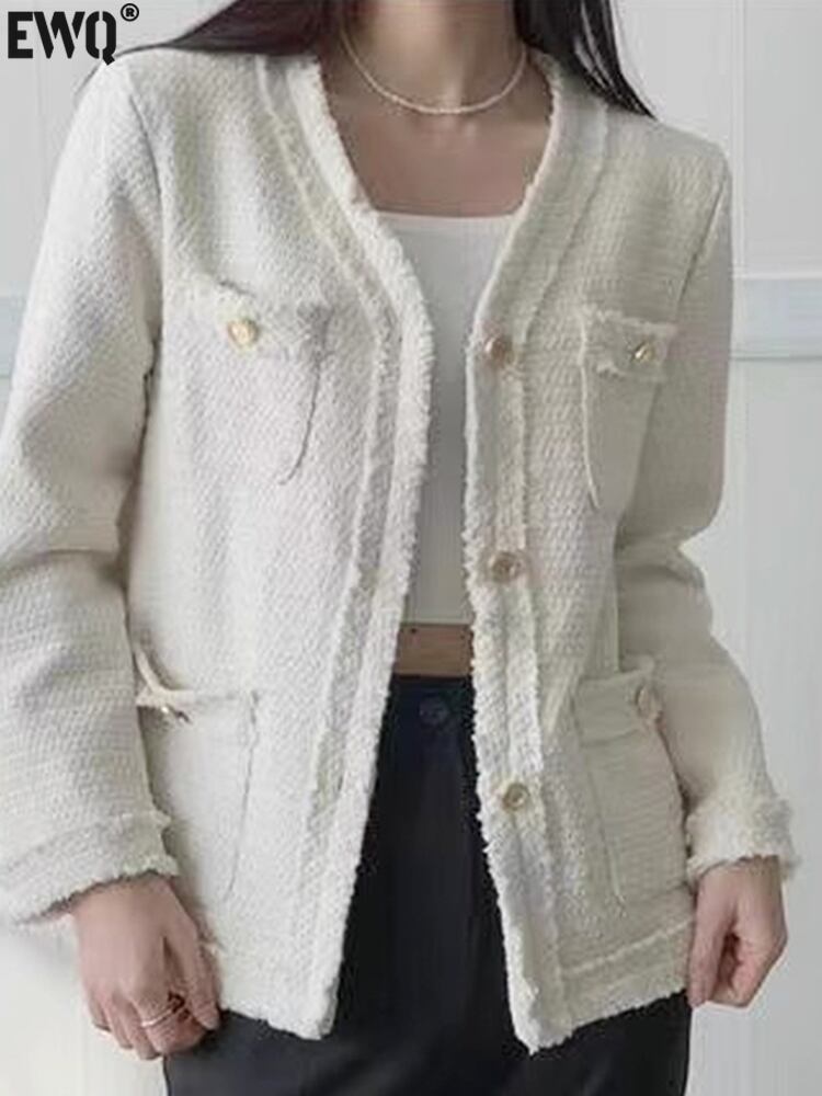 [EWQ] シングルブレスト ツイード コート レディース 長袖 ポケット パッチワーク ルーズ ジャケット コート 秋潮 ロング オータム 秋物
