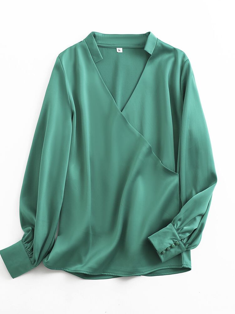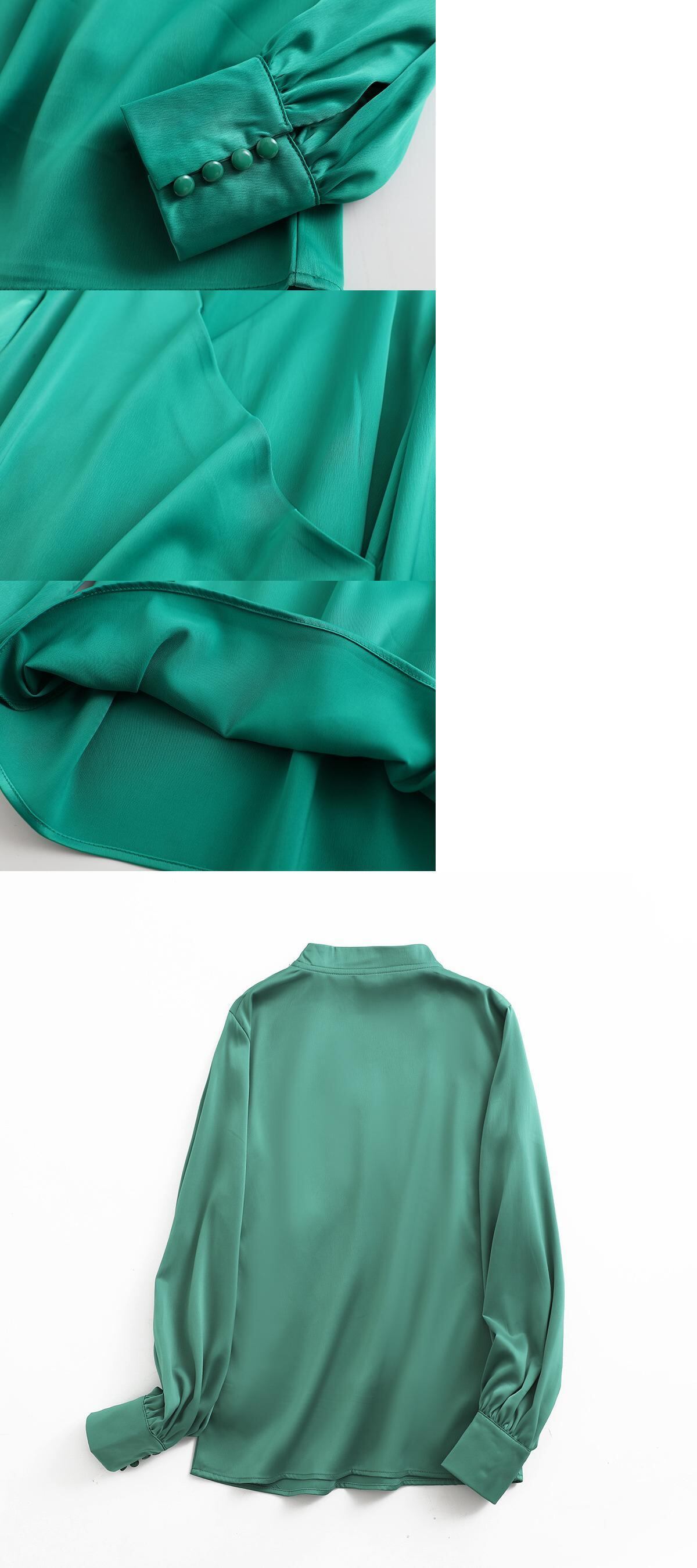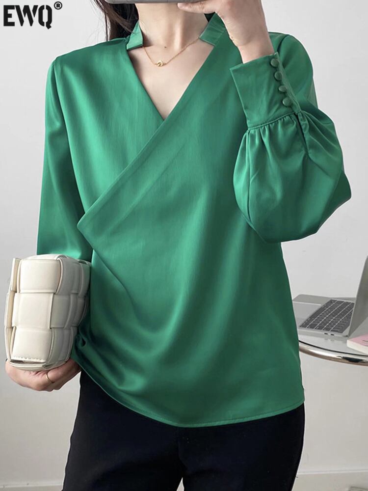 [EWQ] V ネック長袖グレーシャツルーズブラウス秋潮グリーントップス美しい 16O159 ロング オータム 秋物 Vネック