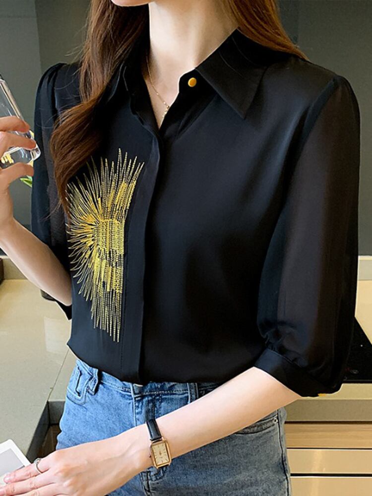 [EWQ] 刺繍シフォンシャツ半袖気質ゆったりシングルブレスト夏潮トップス ショート ハーフスリーブ サマー 夏物