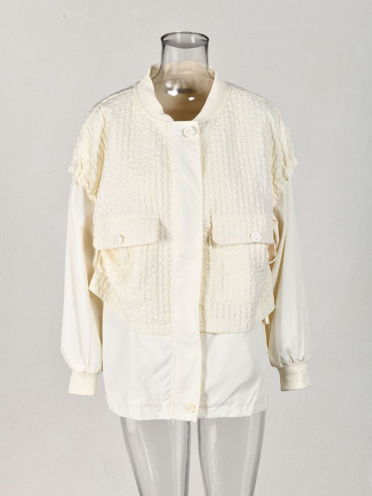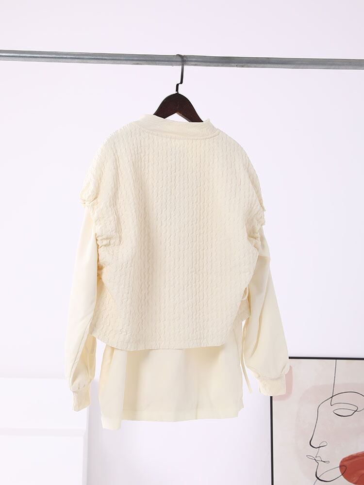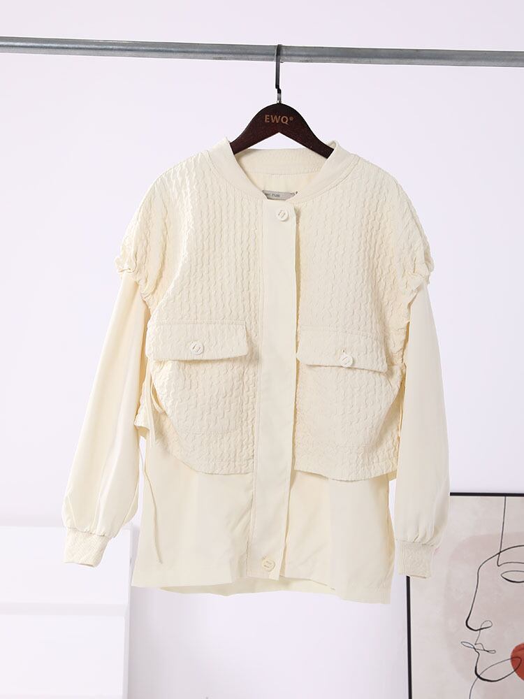 [EWQ] シックオーバーサイズ長袖フェイクツーピースジャケット秋 O ネックジッパールーズコート ロング オータム 秋物 Oネック