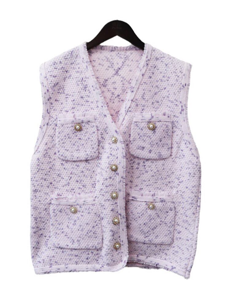 [EWQ] 甘いポケットセーターベストシングルブレストバリテルノースリーブニットタンク秋潮チョッキ 16U3238 大人ガーリー スウィート キュート カジュアル オータム 秋物