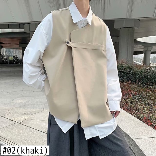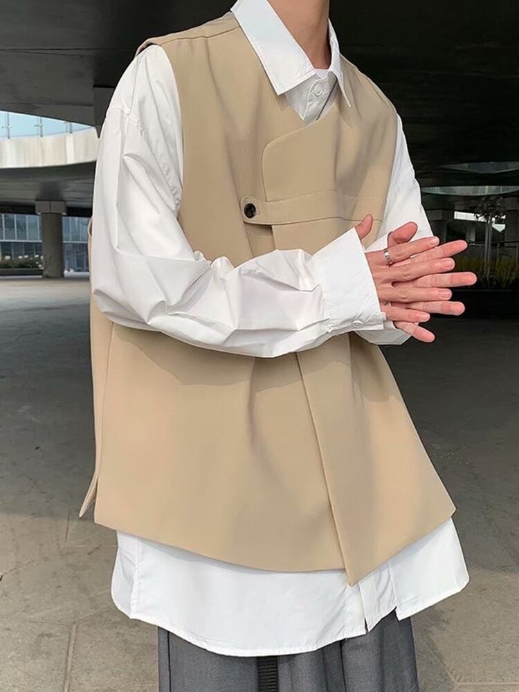 [EWQ] 非対称包帯ボタン装飾スーツベストルーズノースリーブジャケット夏潮トップ サマー 夏物