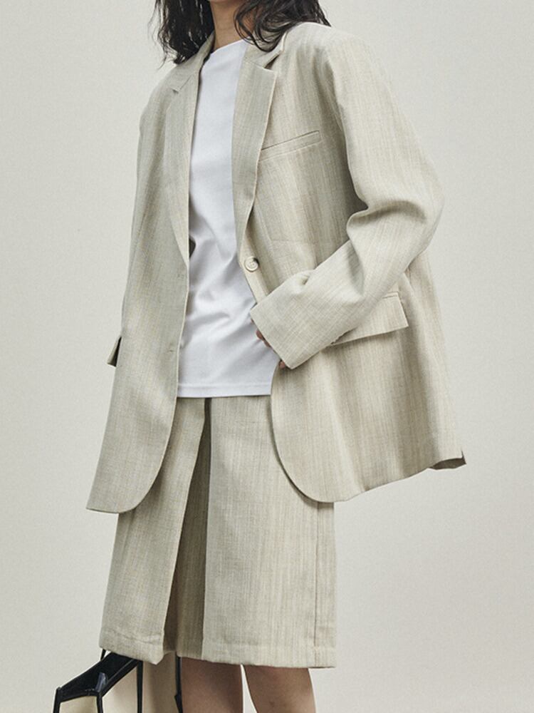 [EWQ] 有能リネンブレザーコート長袖ルーズ気質スーツジャケット秋潮ブレザー ロング オータム 秋物