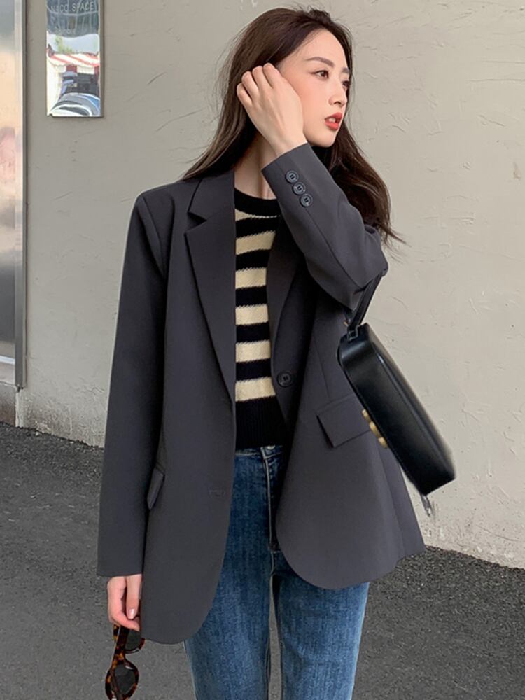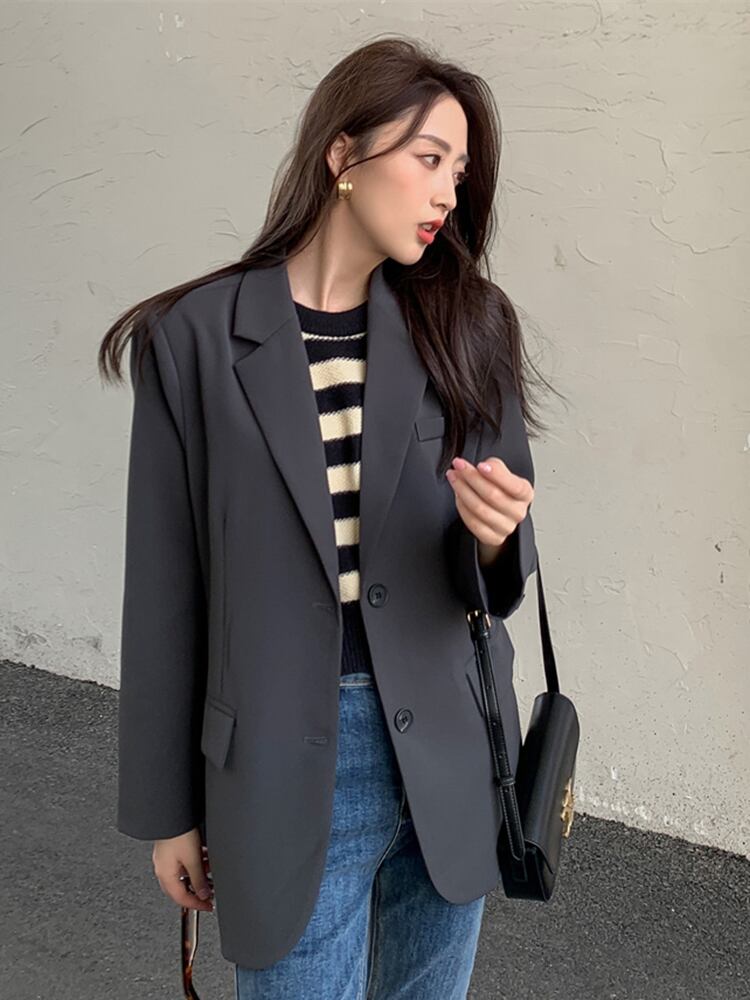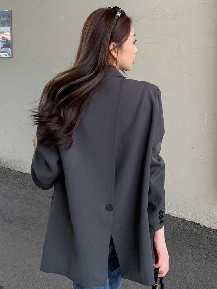 [EWQ] ルーズブレザーコートバックスプリットボタン装飾スーツジャケット秋潮気質ブレザー オータム 秋物