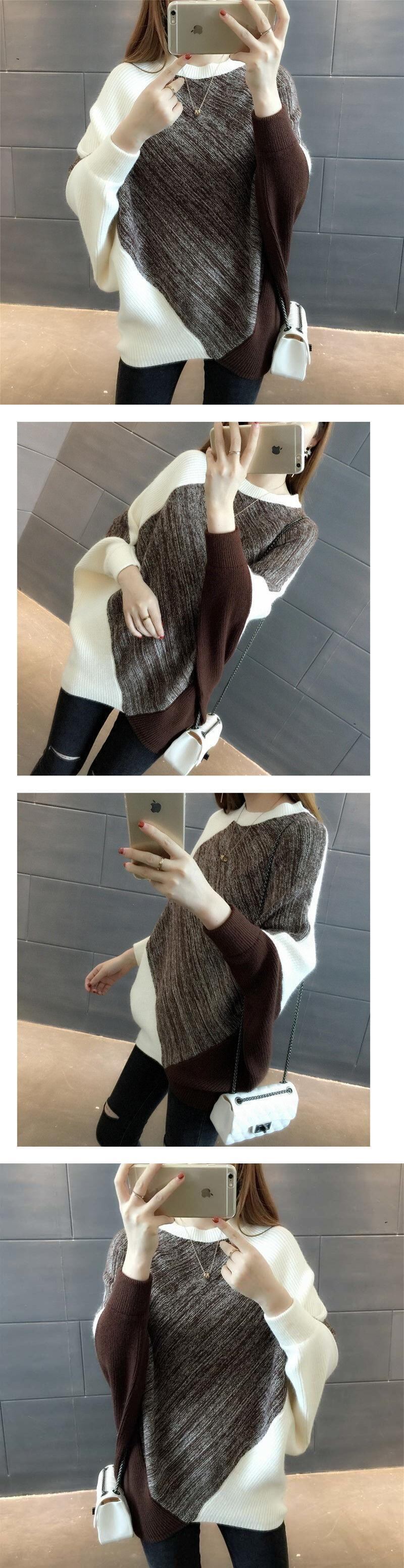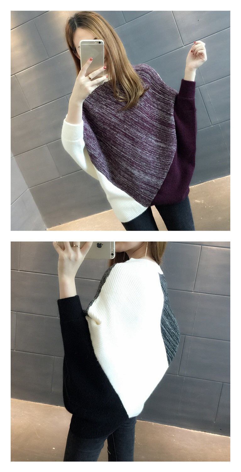 [EWQ] Oネック バットスリーブ セーター 厚手 スプライス トレンド レディース 秋冬 プルオーバー ニット オータム 秋物 ウィンター 冬物