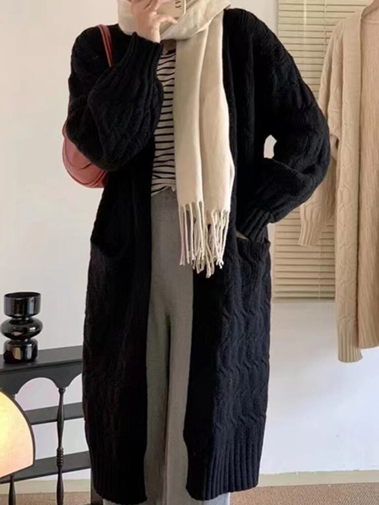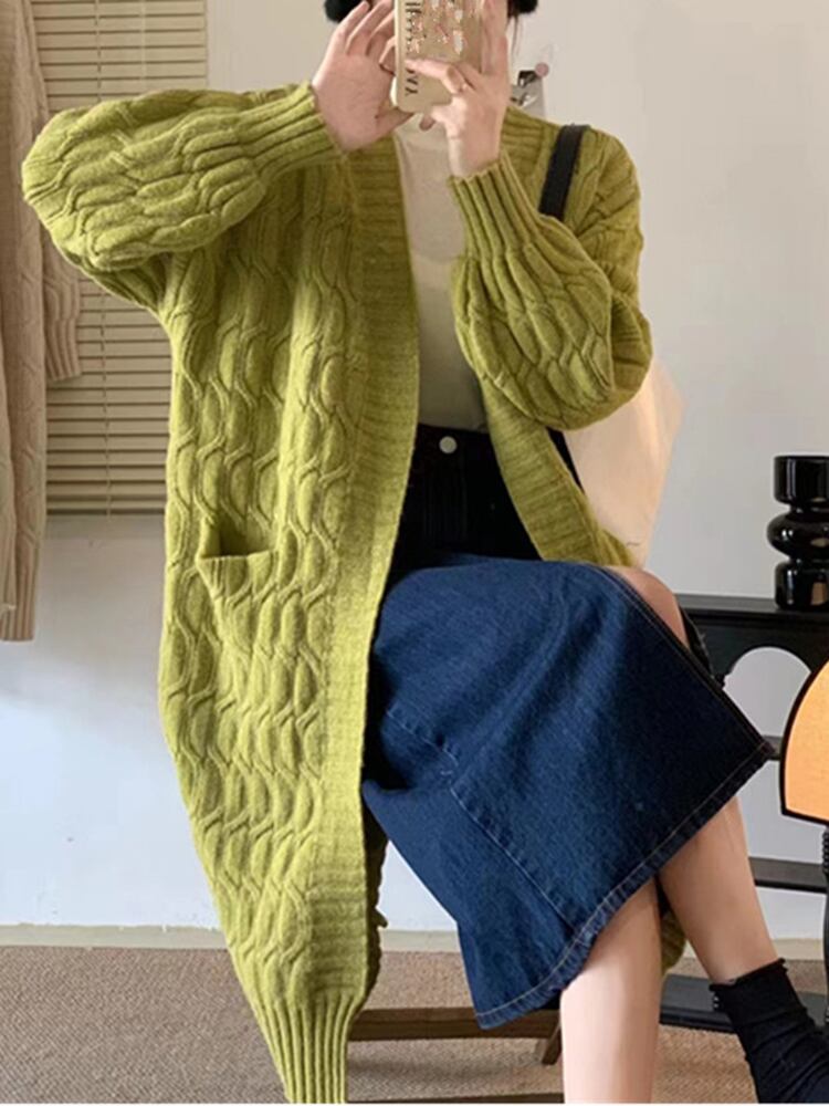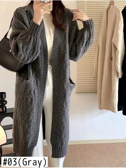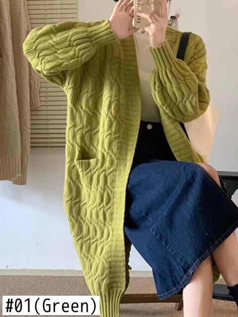 [EWQ] 丈カーディガンコートランタンスリーブポケットルーズセータージャケット秋冬潮ニット生き抜く オータム 秋物 ウィンター 冬物