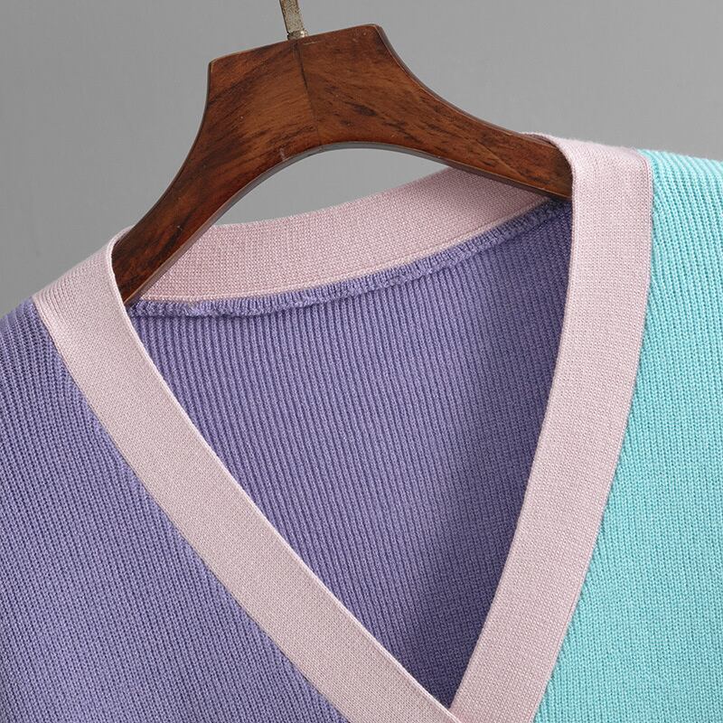 [EWQ] コントラストカラーカーディガンコート秋薄手長袖シングルブレストルーズセータージャケット潮服 ロング オータム 秋物