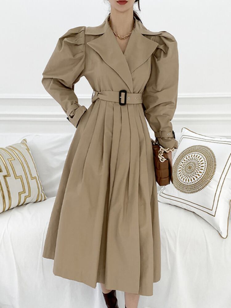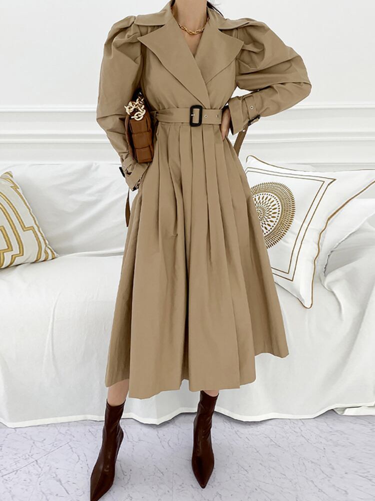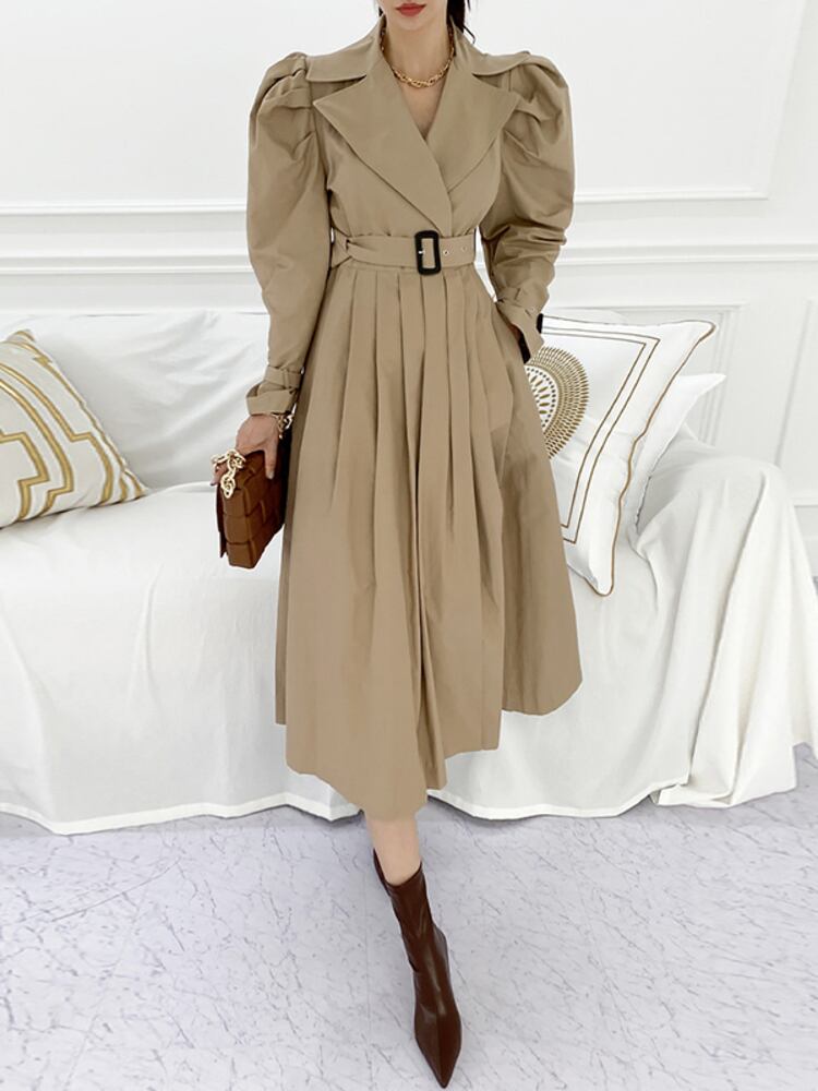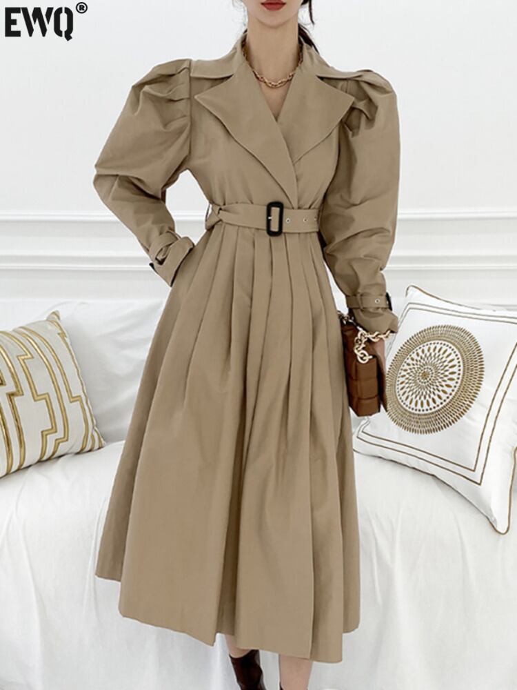 [EWQ] ノッチ付きベルトドレス長袖包帯バックル気質ドレス Vestido 秋冬 6U4179 ロング オータム 秋物 ウィンター 冬物 ハーネス